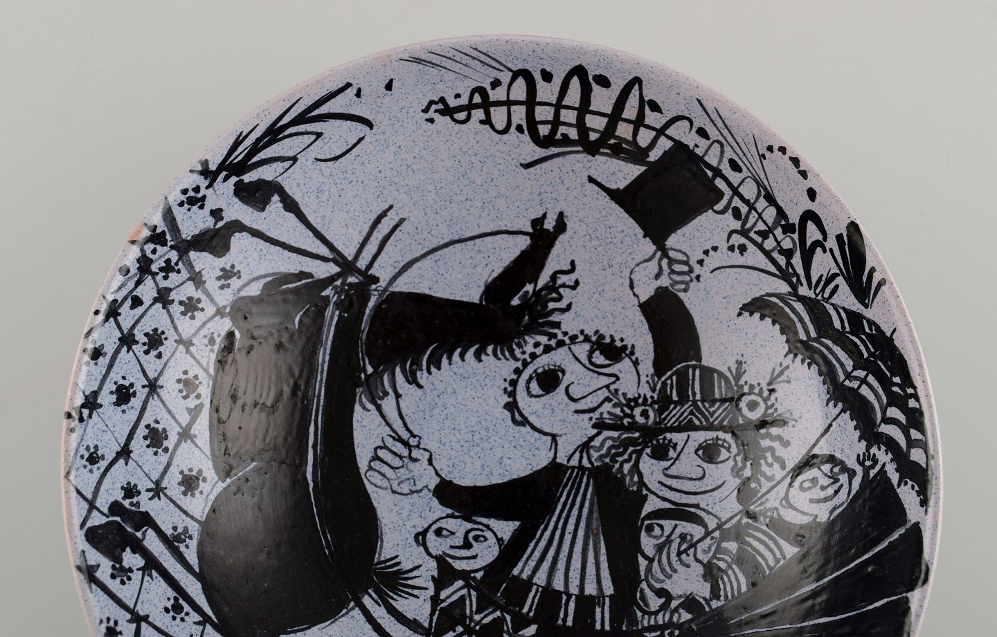 Bjørn Wiinblad (1918-2006), Danmark. Tidlig unika skål i håndmalet og glaseret keramik. Dateret 1946. Måler: 18,5 x 6 cm. I flot stand. Signeret og dateret.