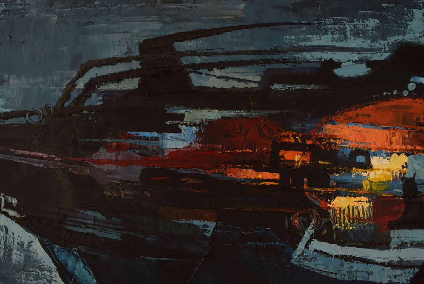 Roald Hansen (1938-2018), Danmark. Olie på lærred. Abstrakt komposition. 1970'erne. Lærredet måler: 83 x 41 cm. Rammen måler: 9 cm. I flot stand. Signeret.