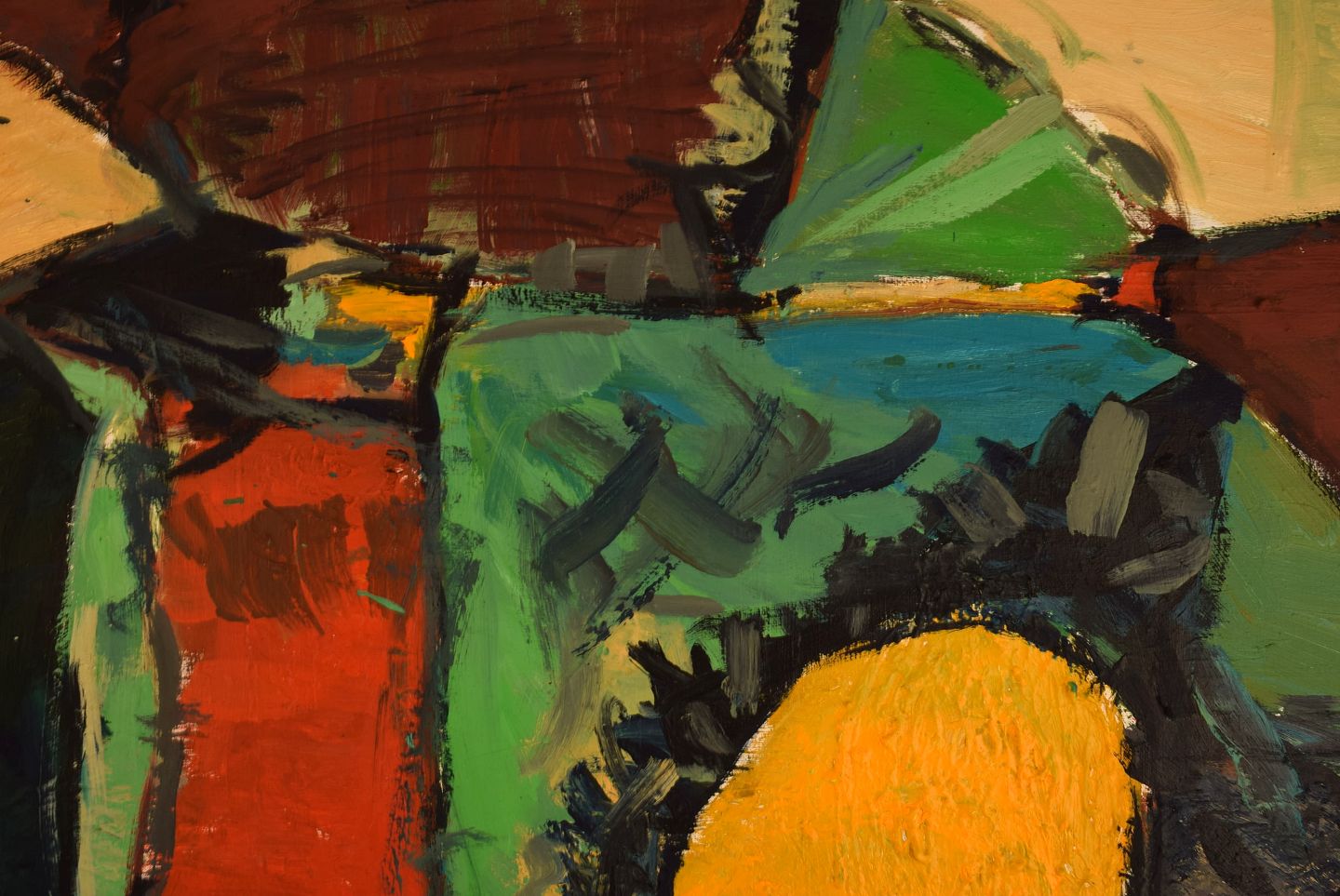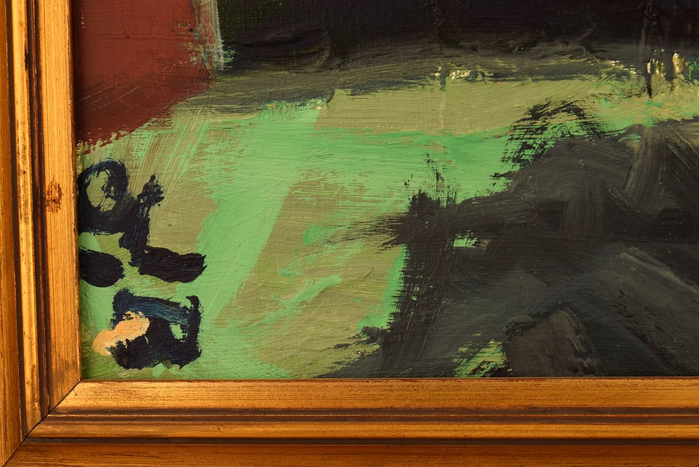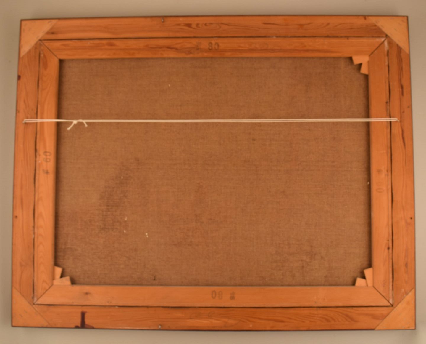 Ubekendt skandinavisk kunstner. Olie på lærred. Abstrakt komposition. 1960'erne. Lærredet måler: 80 x 60 cm. Rammen måler: 6 cm. I flot stand. Signeret i monogram.