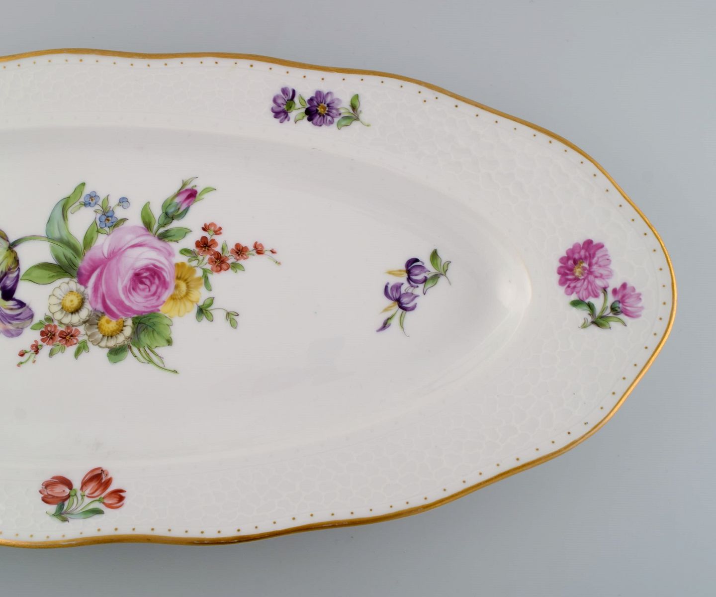 Royal Copenhagen Saksisk Blomst. Kolossalt fiskefad i porcelæn med håndmalede blomster og guldkant. 1800-tallet. Måler: 62 x 25 x 5 cm. I flot stand. Stemplet.