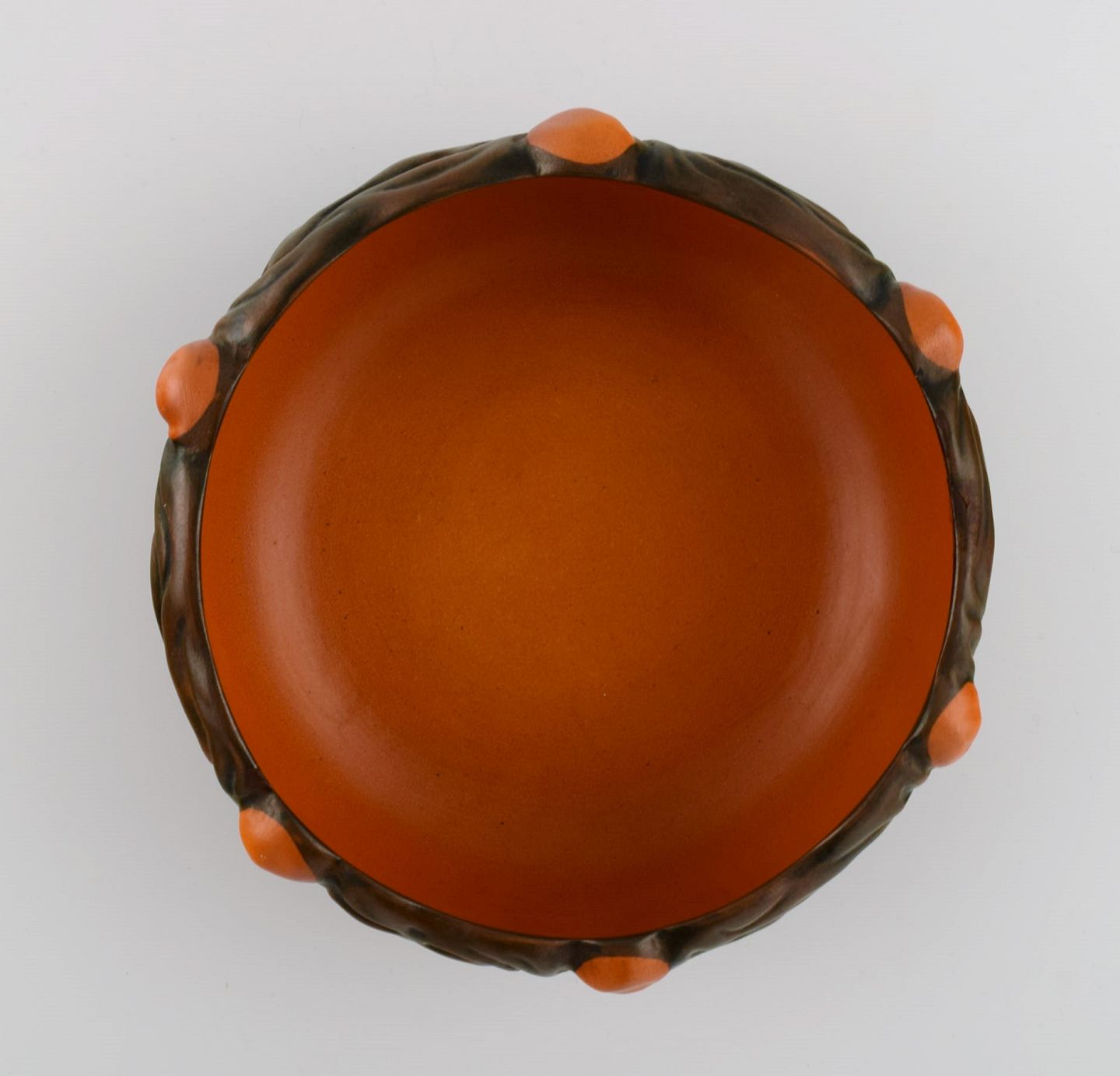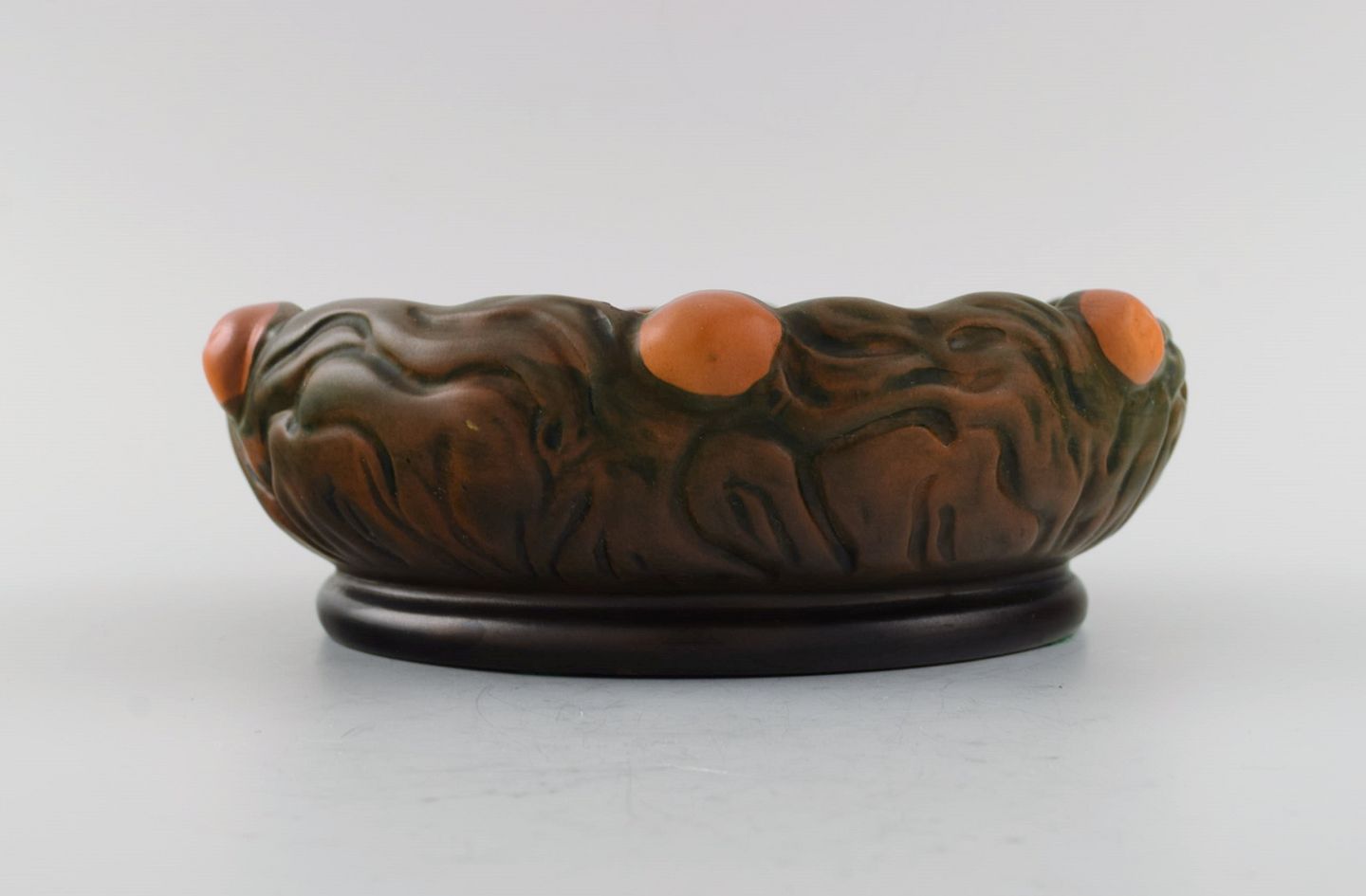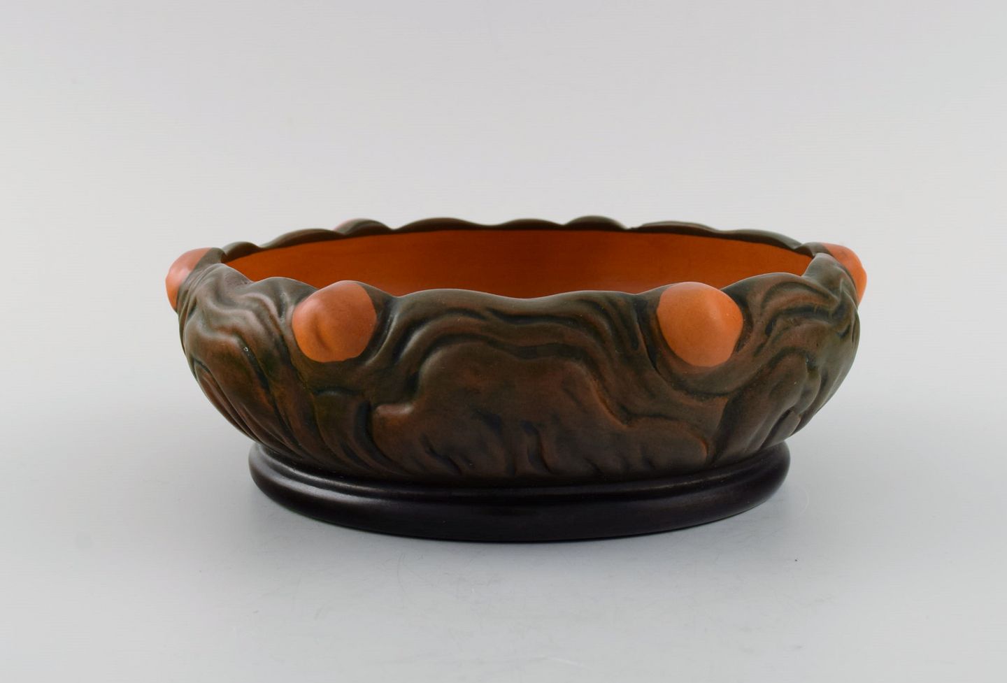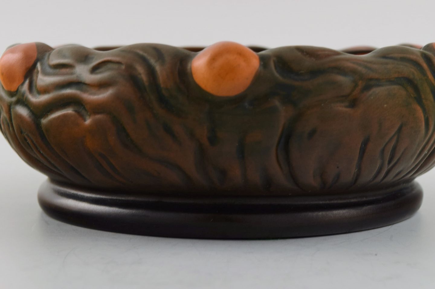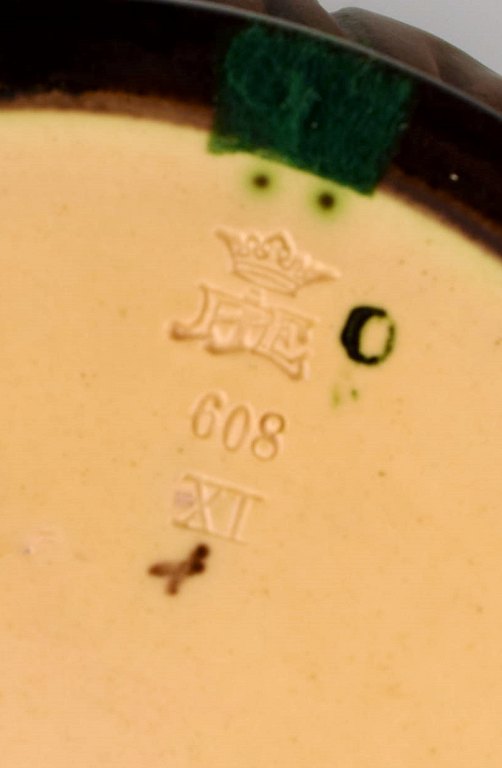 Ipsens enke, Danmark. Skål i håndmalet og glaseret keramik. 1920/30'erne. Modelnummer 608. Måler: 20,5 x 7 cm. I flot stand. Stemplet.
