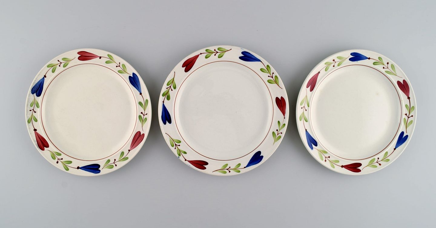 Stig Lindberg (1916-1982) for Gustavsberg. Tre Ranka porcelænstallerkener med håndmalede blomster og bladværk. Midt 1900-tallet. Diameter: 17,5 cm. I flot stand. Signeret.