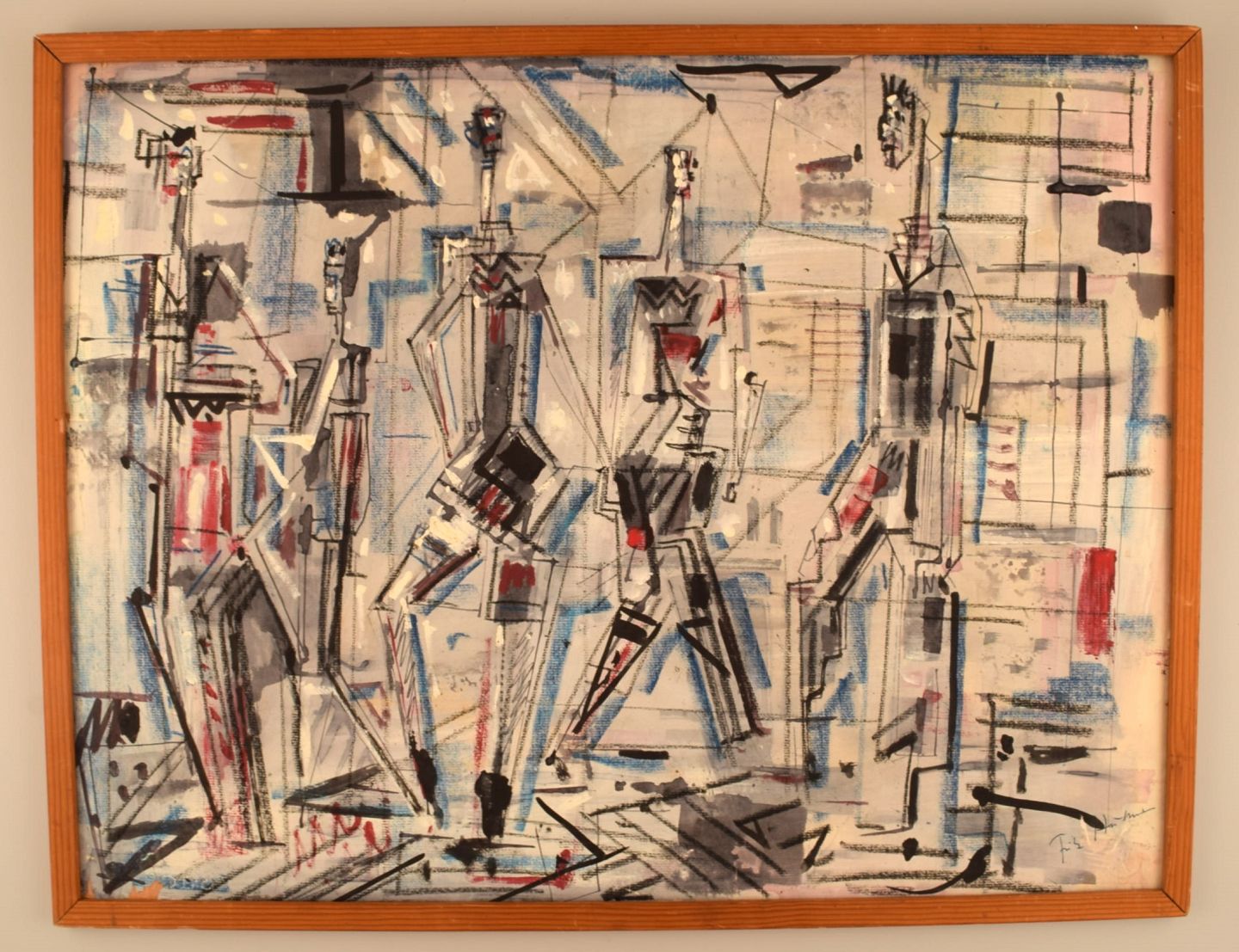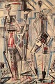 Fritz Huhnen (1895-1981), tysk kunstner. Mixed media på lærred. Fem personer. Midt 1900-tallet. Lærredet måler: 60 x 49 cm. Rammen måler: 1,5 cm. I flot stand. Signeret.
