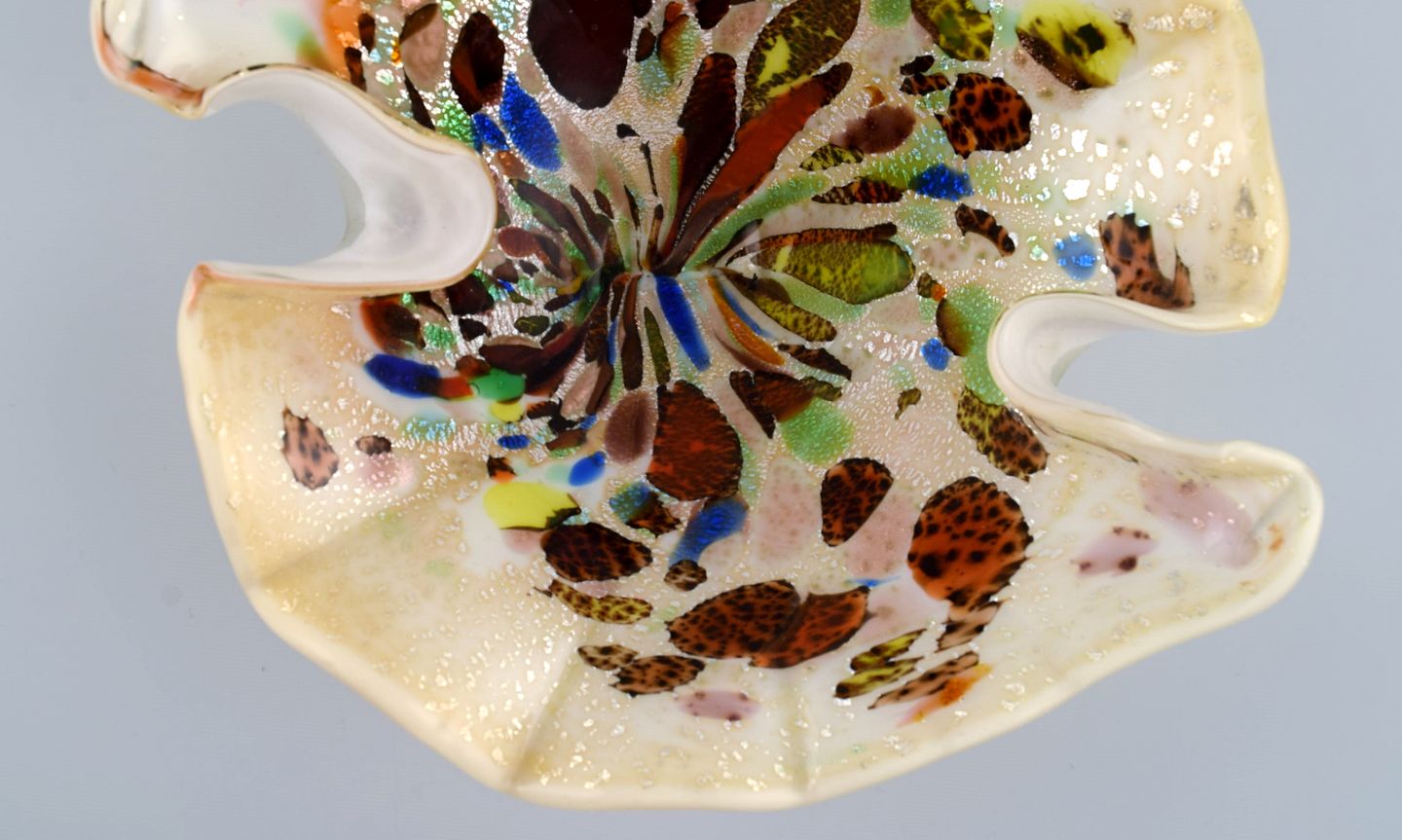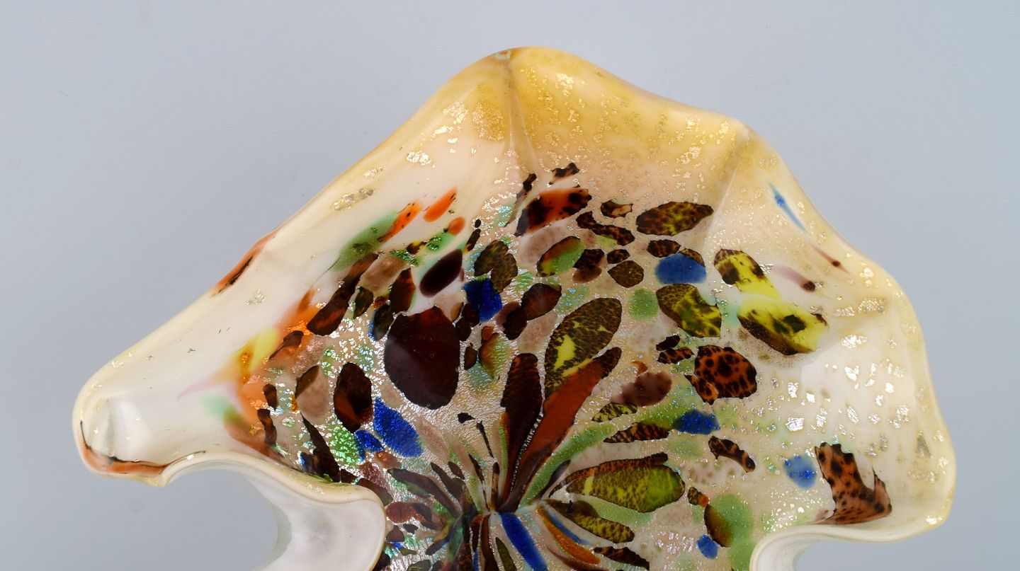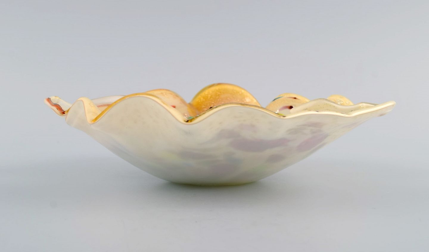 Organisk formet Murano skål i polykromt mundblæst kunstglas med bølget kant. Italiensk design, 1960'erne. Måler: 20 x 6 cm I flot stand.