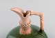 Antik og sjælden Zsolnay kande i glaseret fajance. Smuk glasur i grønne og sand nuancer. Dateret 1895-1898.