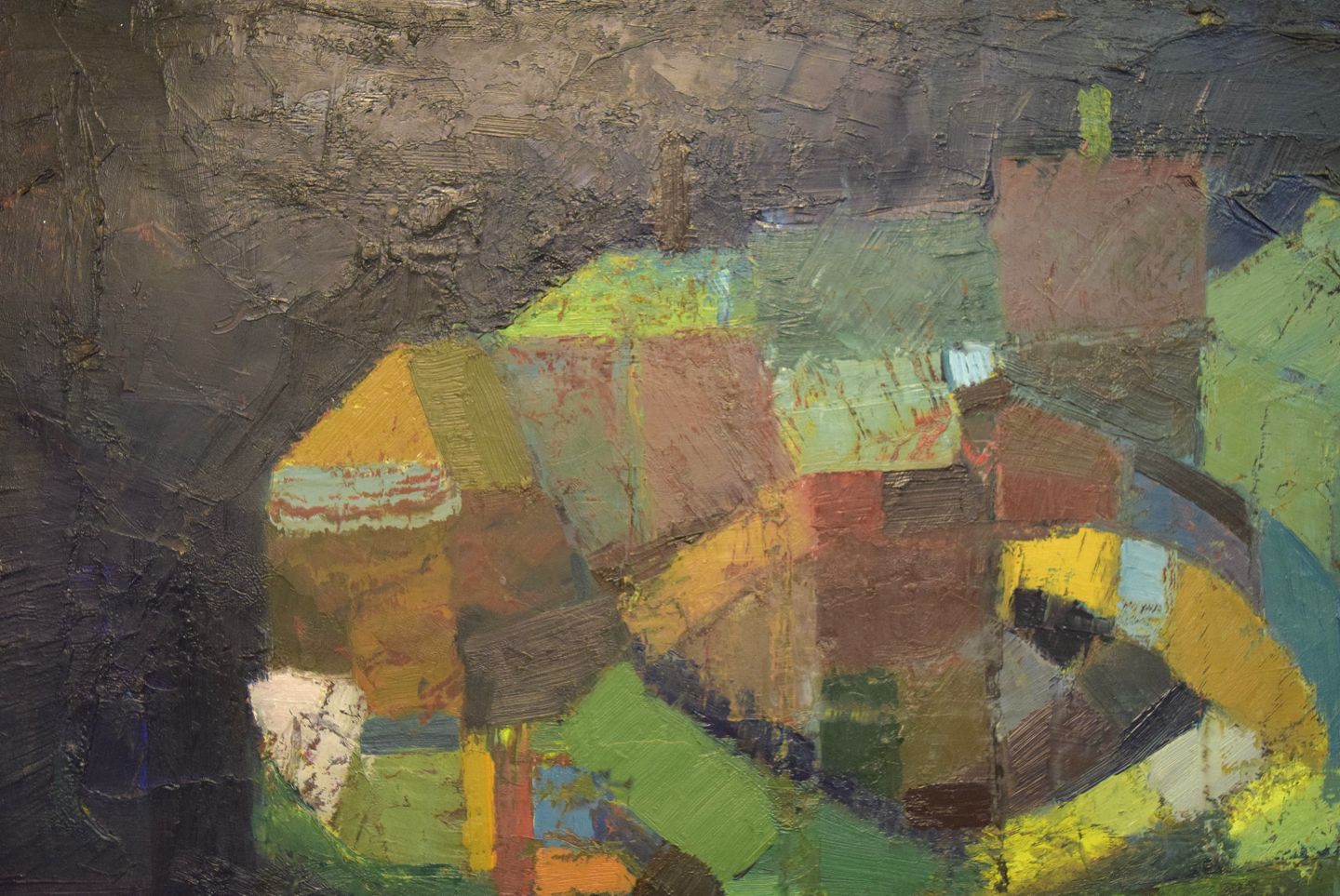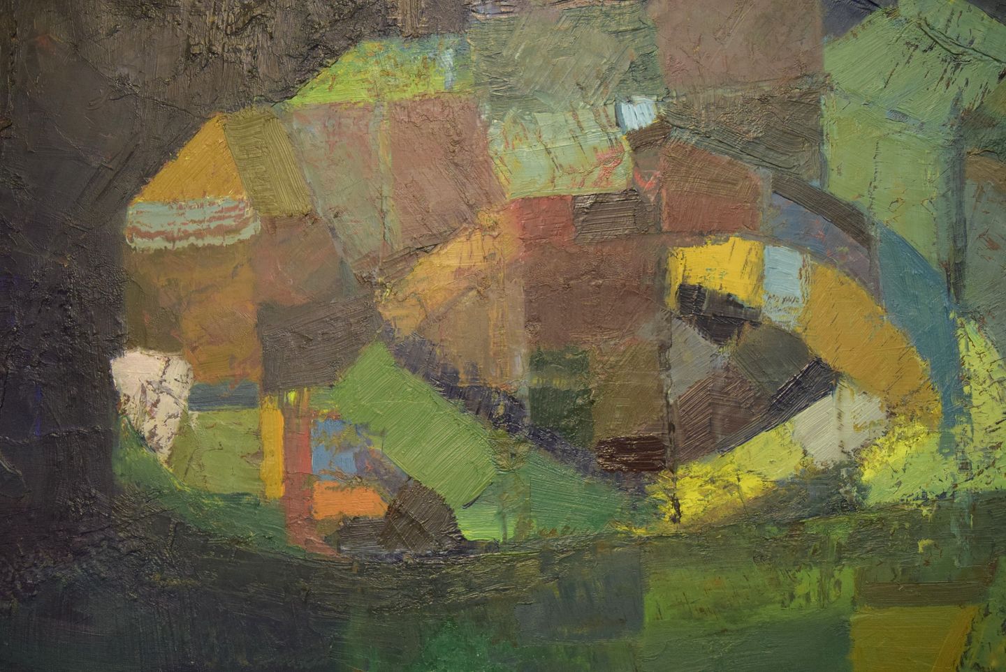 Ulla Ekman-Dahlbäck (1924-2011), svensk kunstner. Stort maleri. Olie på lærred. Abstrakt komposition. 1960'erne. Lærredet måler: 108 x 63 cm. Rammen måler: 5 cm. I flot stand. Signeret.