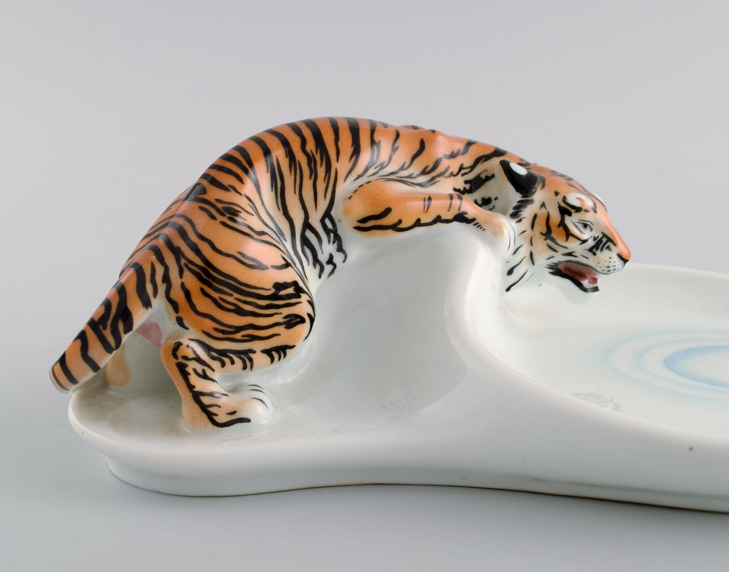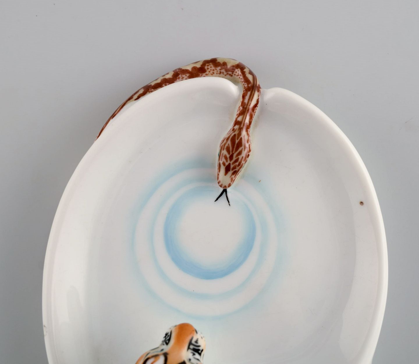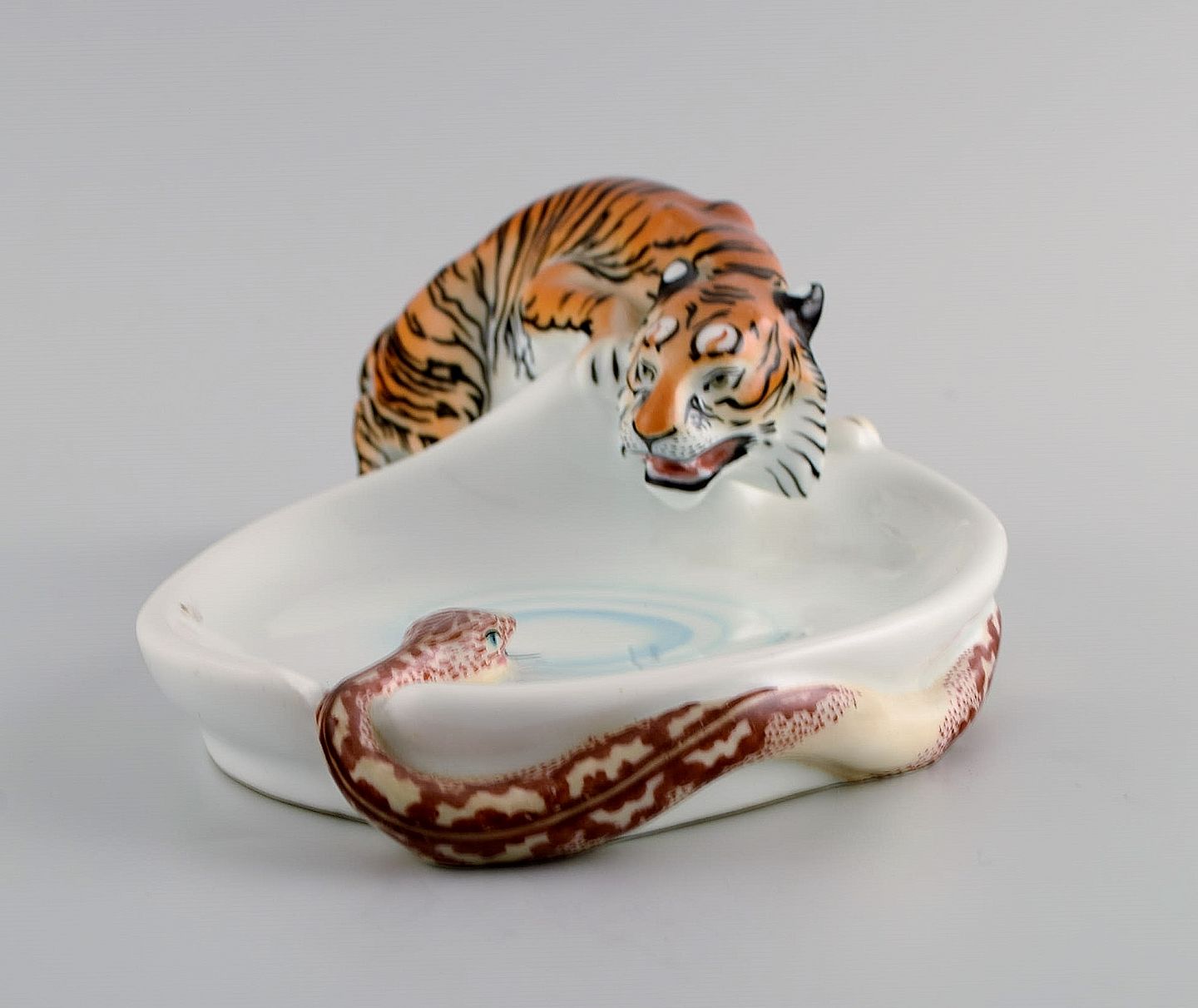 Sjælden art nouveau Stadt Meissen porcelænsfigur / skål. Tiger og slange. Tidligt 1900-tallet.