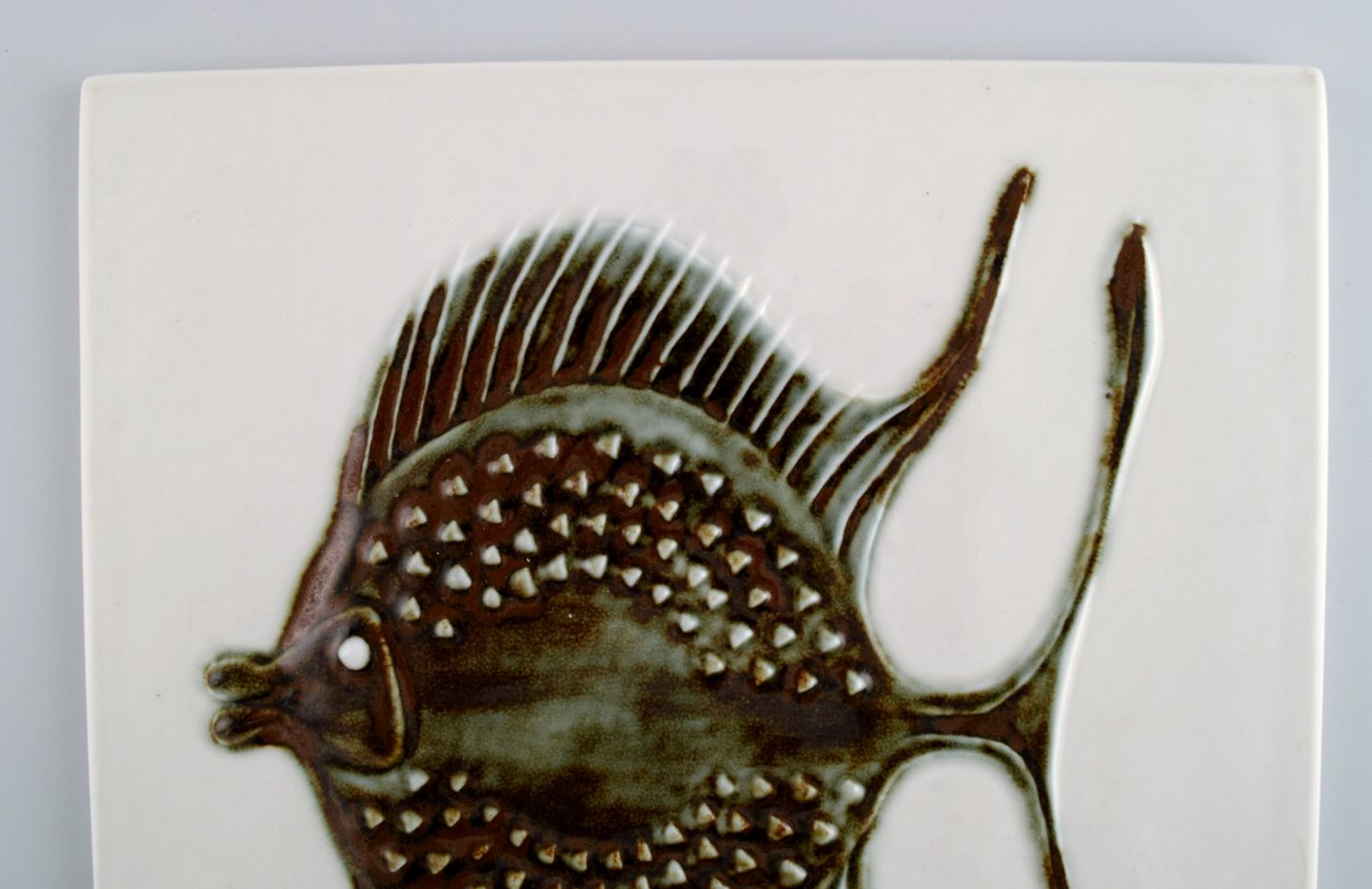 Bertil Lundgren for Rörstrand. "Galleri 1" vægplakette i glaseret porcelæn med fisk. 1970'erne. Måler: 25 x 25 cm. I flot stand. Stemplet.