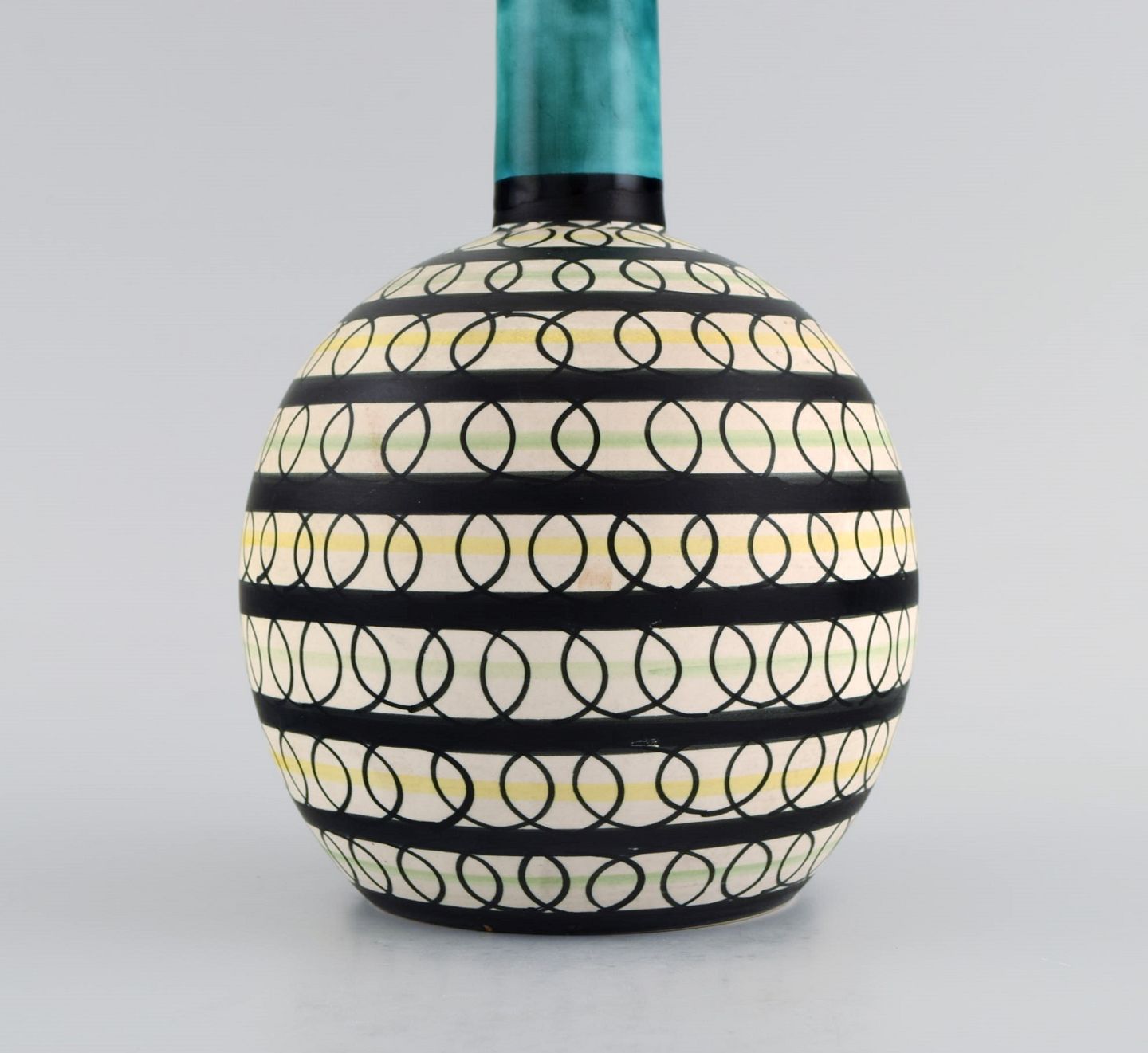 Svensk keramiker. Unika vase i glaseret stentøj. Farverig dekoration. Dateret 1959.