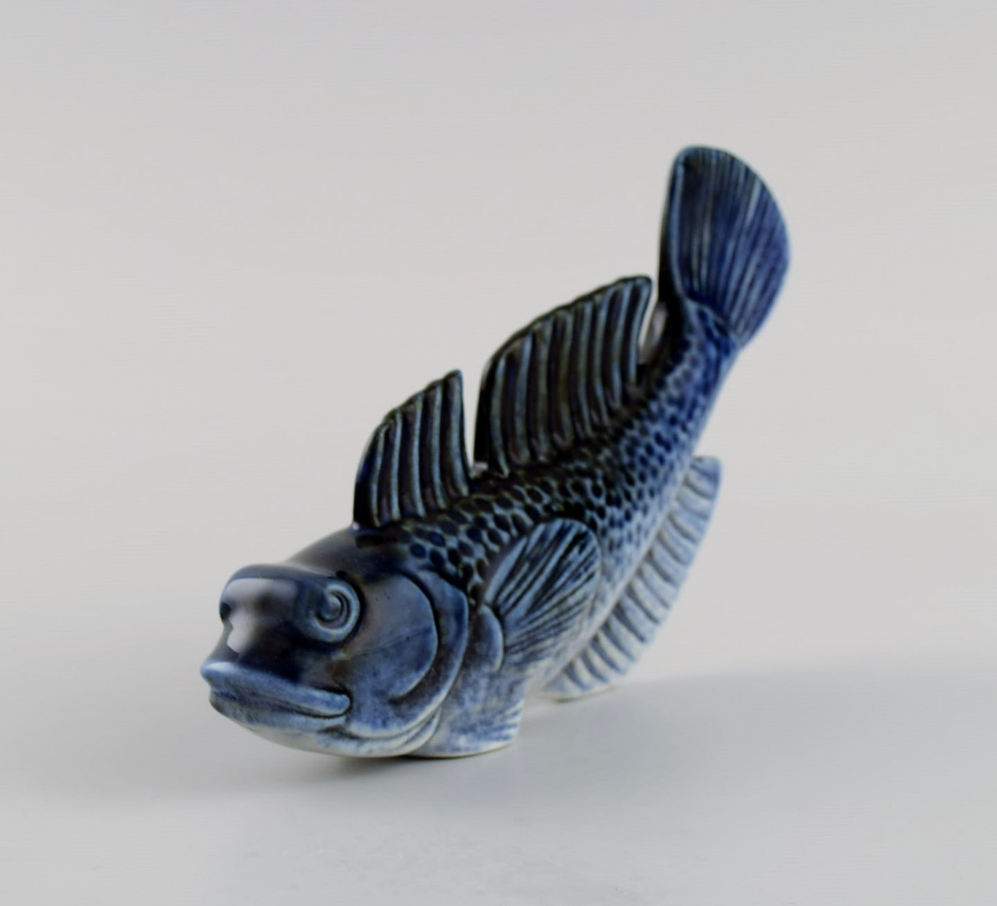 Sven Wejsfelt (1930-2009) for Gustavsberg. Unika Stim fisk i glaseret keramik. Fjæsing. 1980'erne.