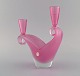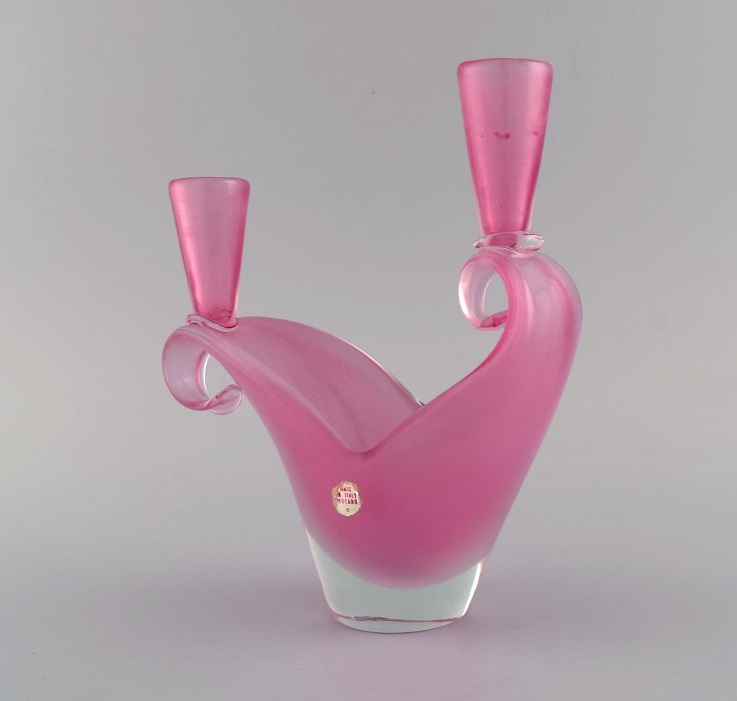 To armet Murano lysestage i lyserødt mundblæst kunstglas. Italiensk design, 1960'erne. Måler: 20 x 19 cm. I flot stand. Mærkat.