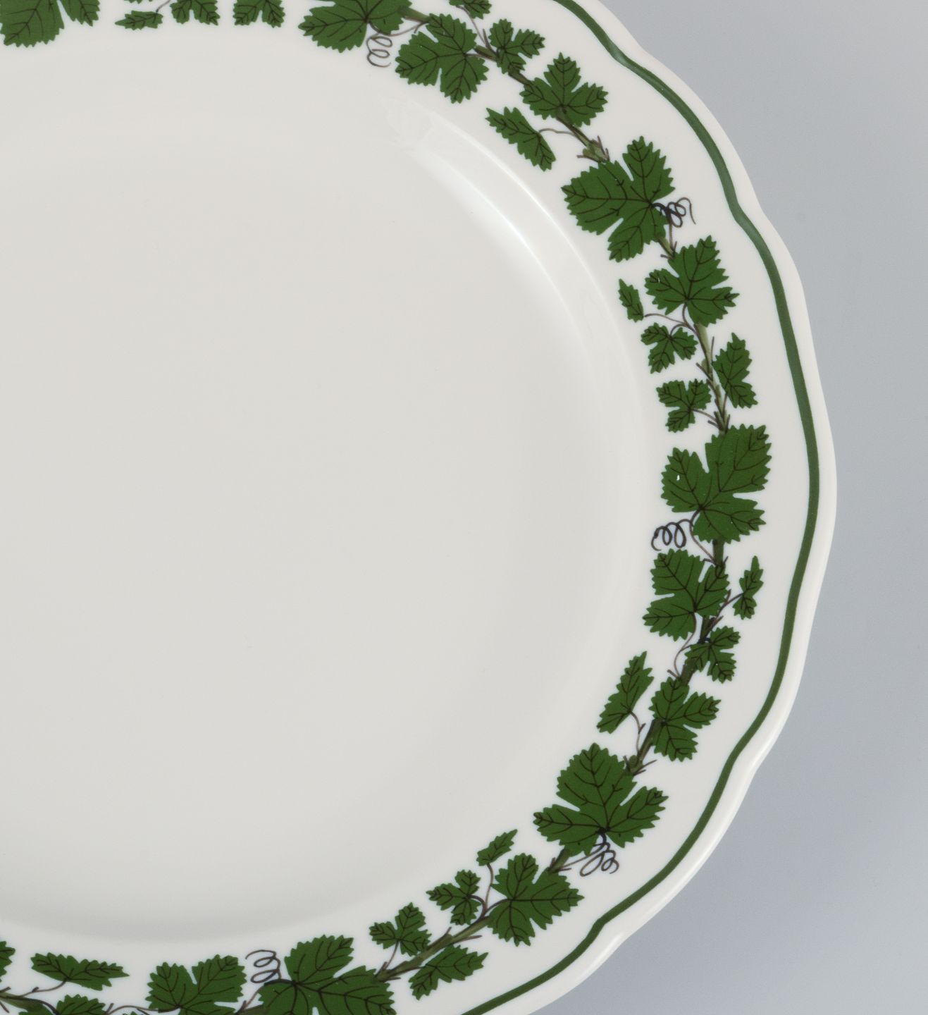 Seks Meissen Green Ivy Vine middagstallerkner i håndmalet porcelæn. 1940'erne. Måler: D 24,5 x H 3,5 I flot stand. Stemplet. 3. sortering