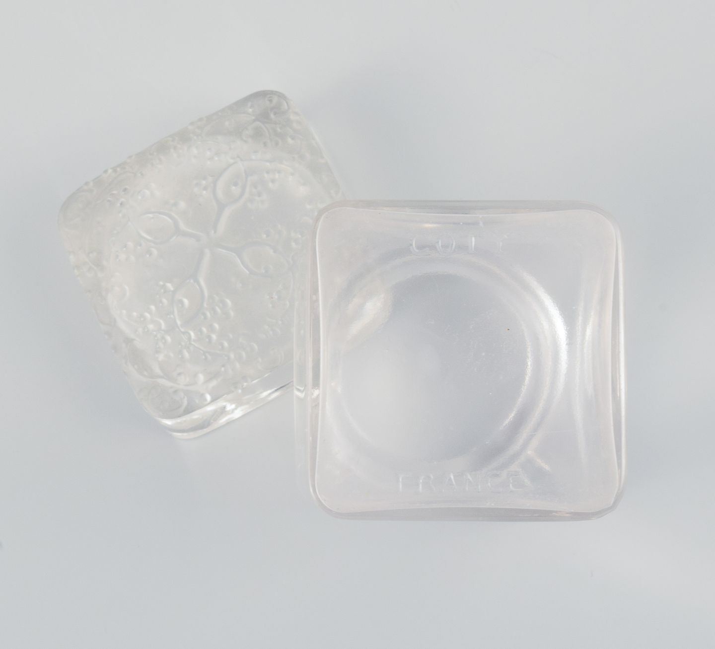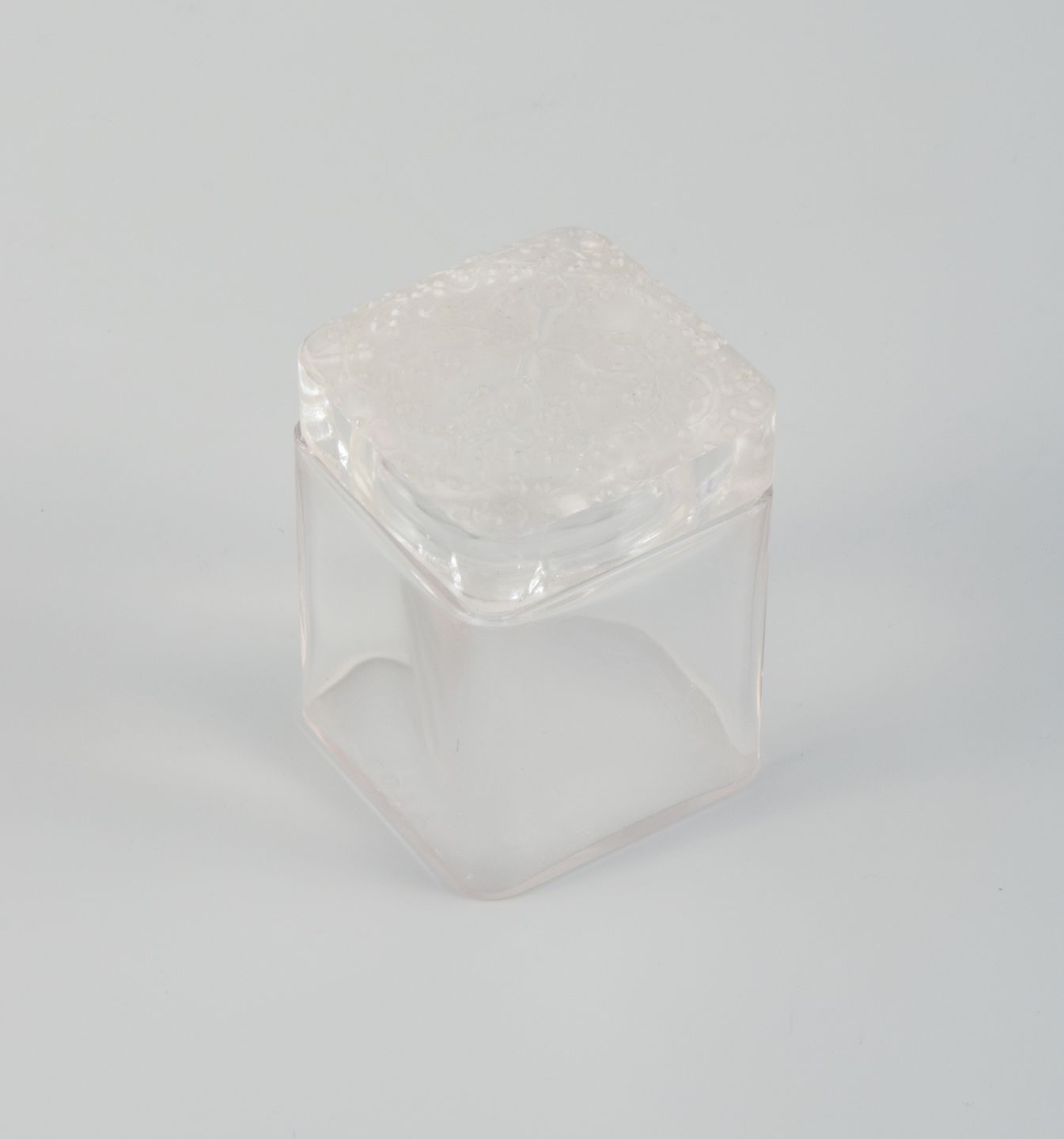 Tidlig Laliqué "La Jacee" lågkrukke til creme. Fremstillet for Coty. 1928. Måler: H 5,5 cm. X D 4,3 cm. Stemplet Coty France I perfekt stand