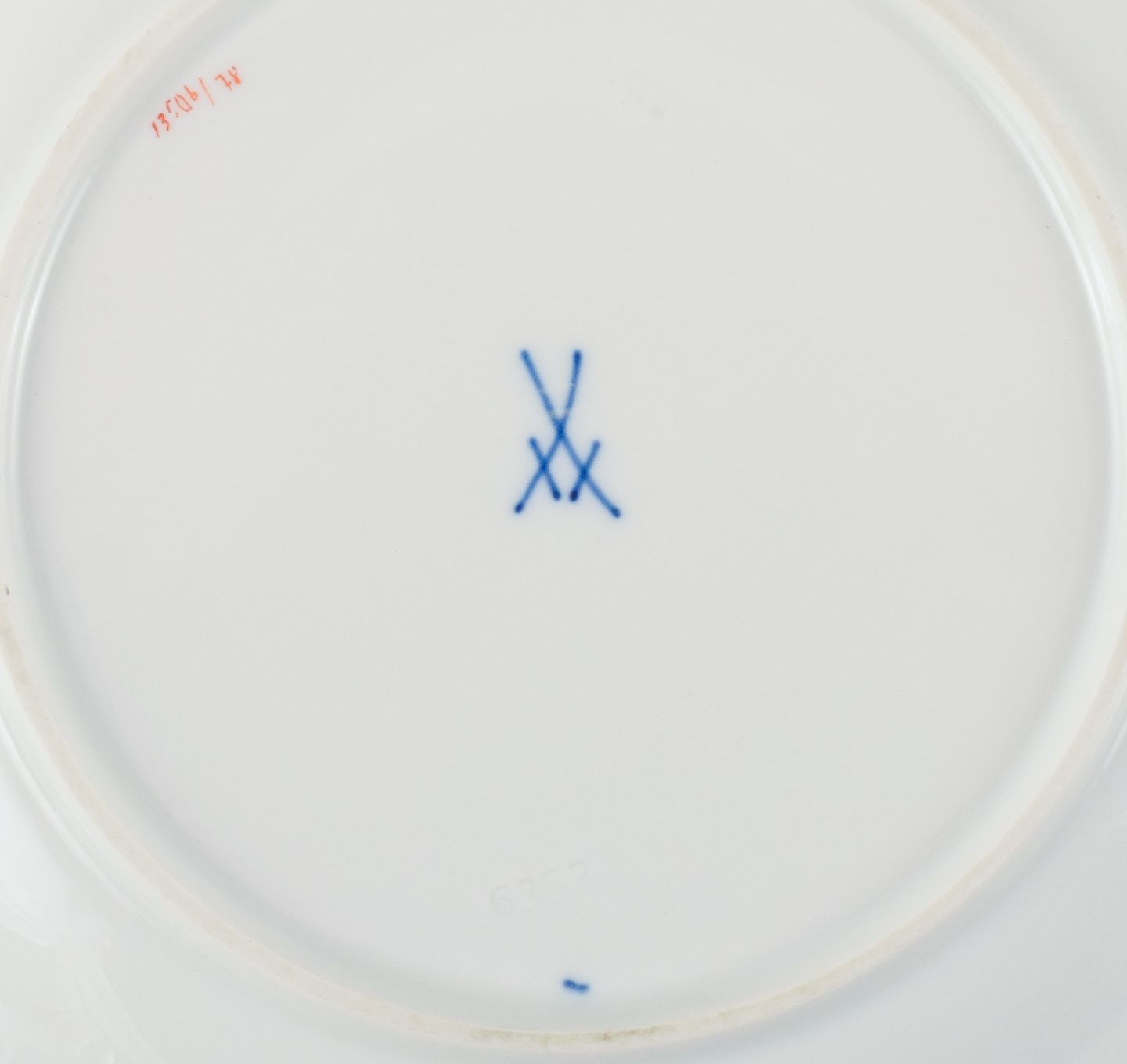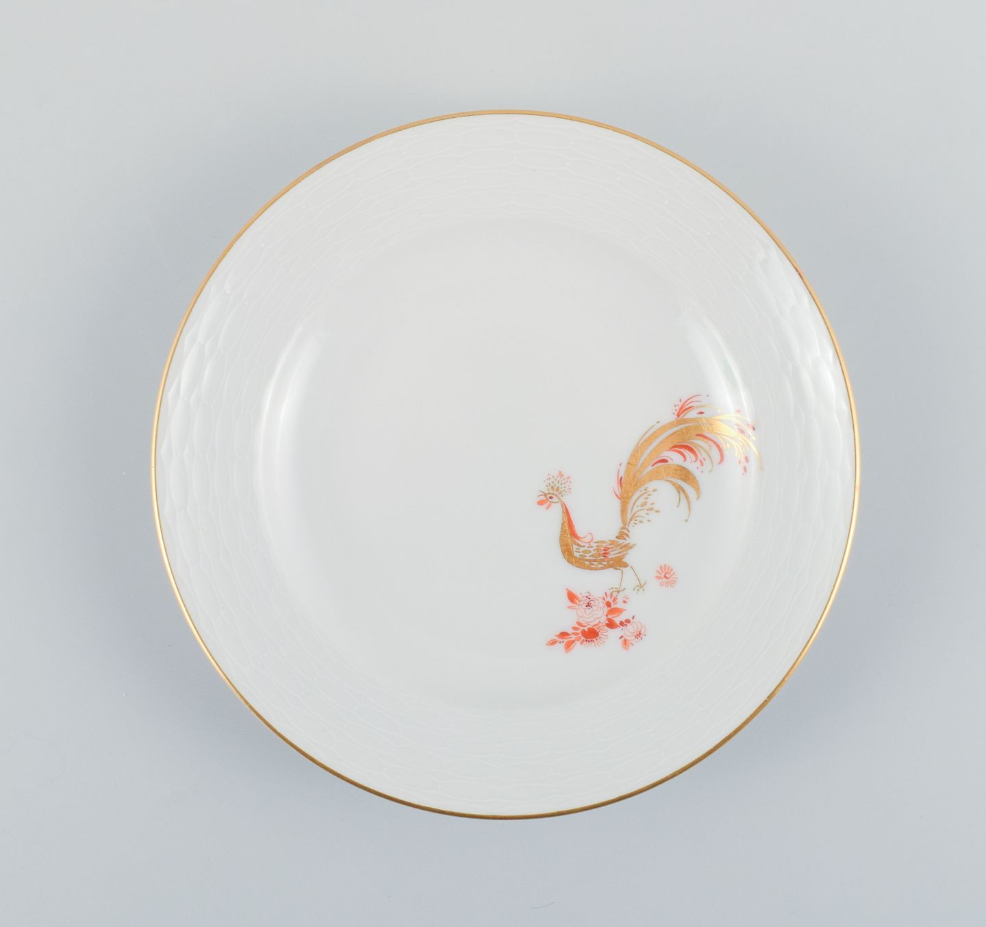 To sjældne art deco Meissen tallerkener med håndmalede påfugle og gulddekoration.