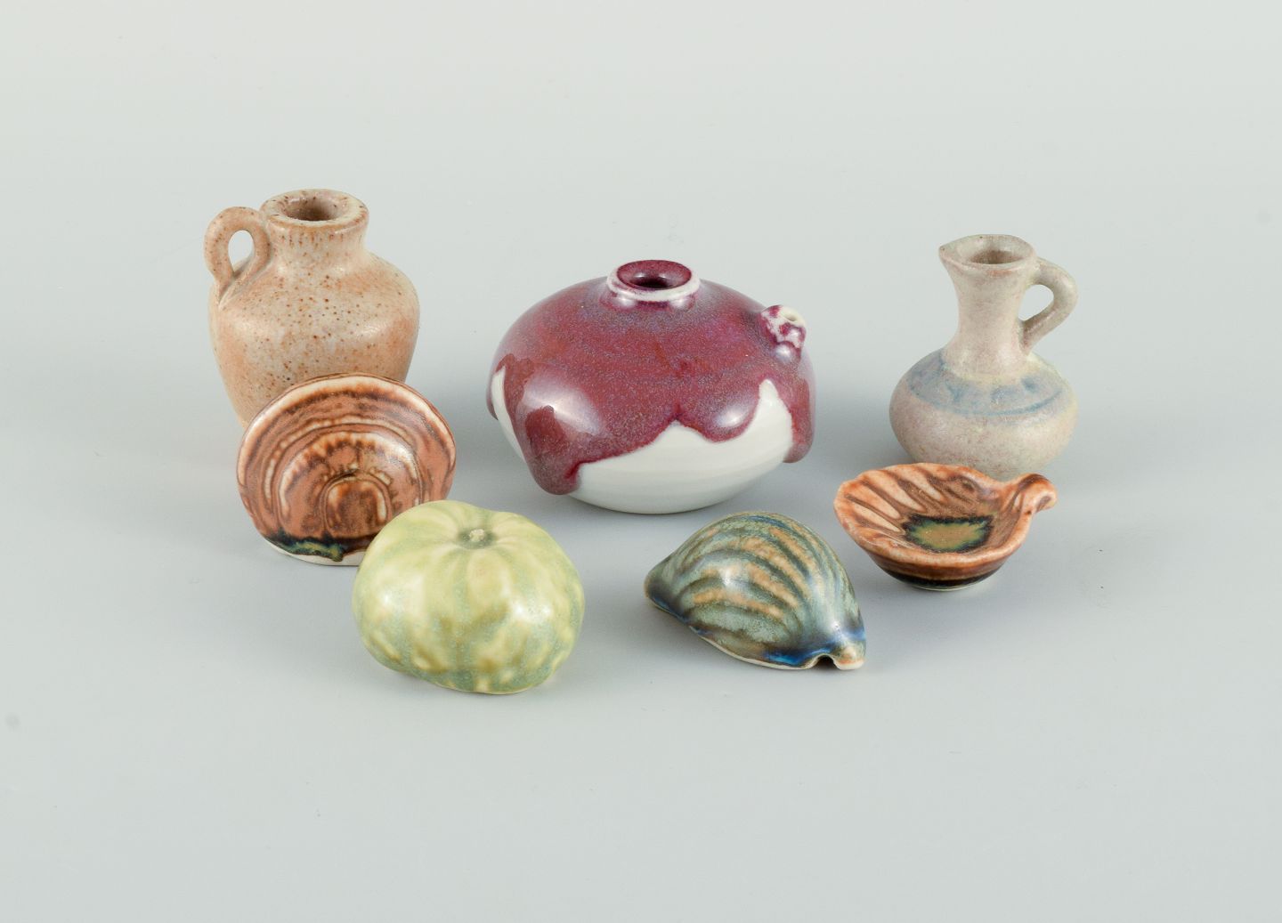 Svennske studio-keramikere, syv miniaturevaser, kander og sneglehuse mm.