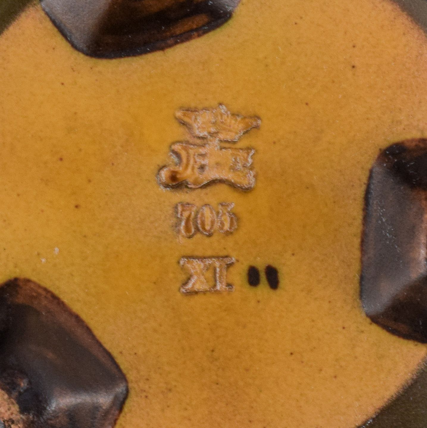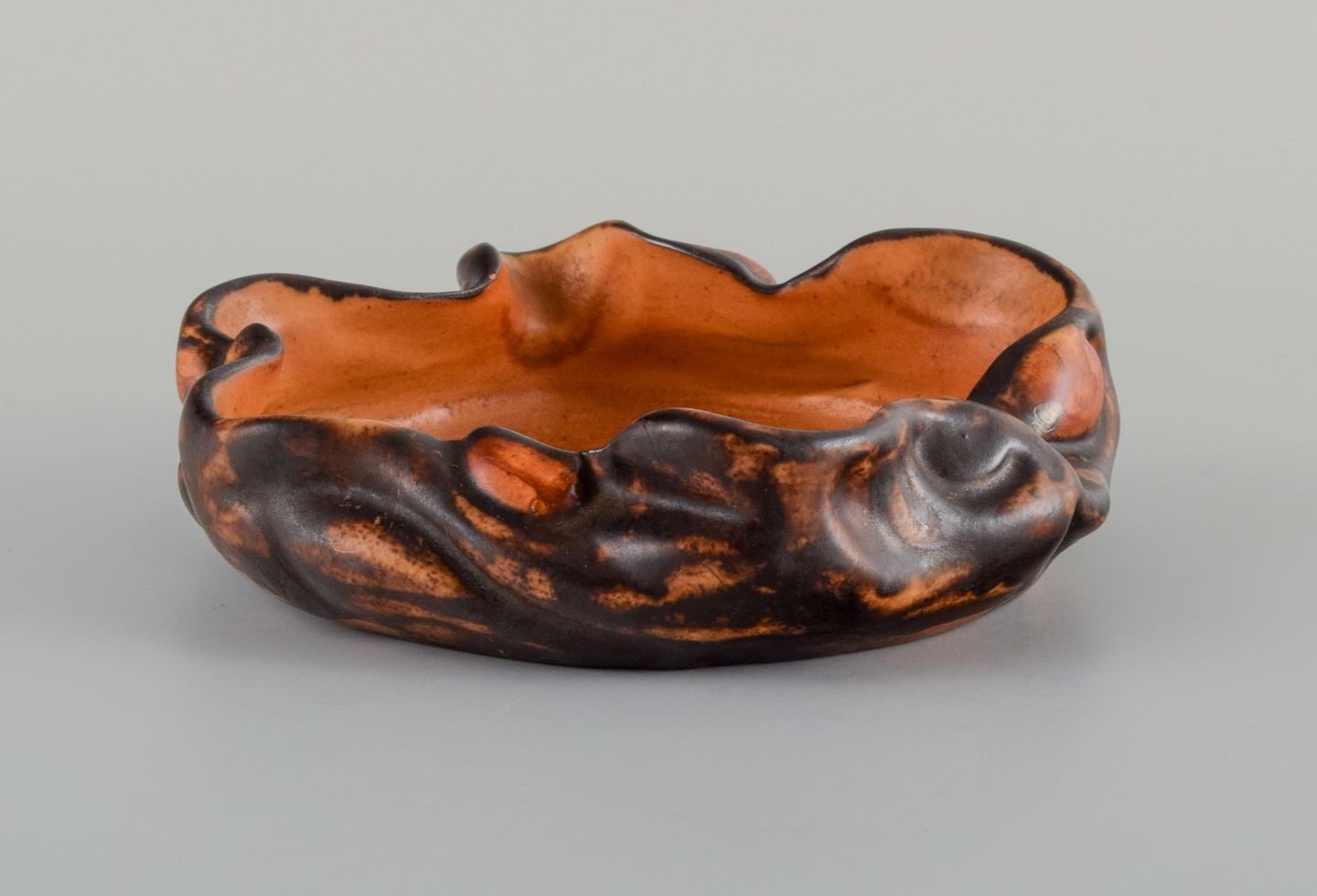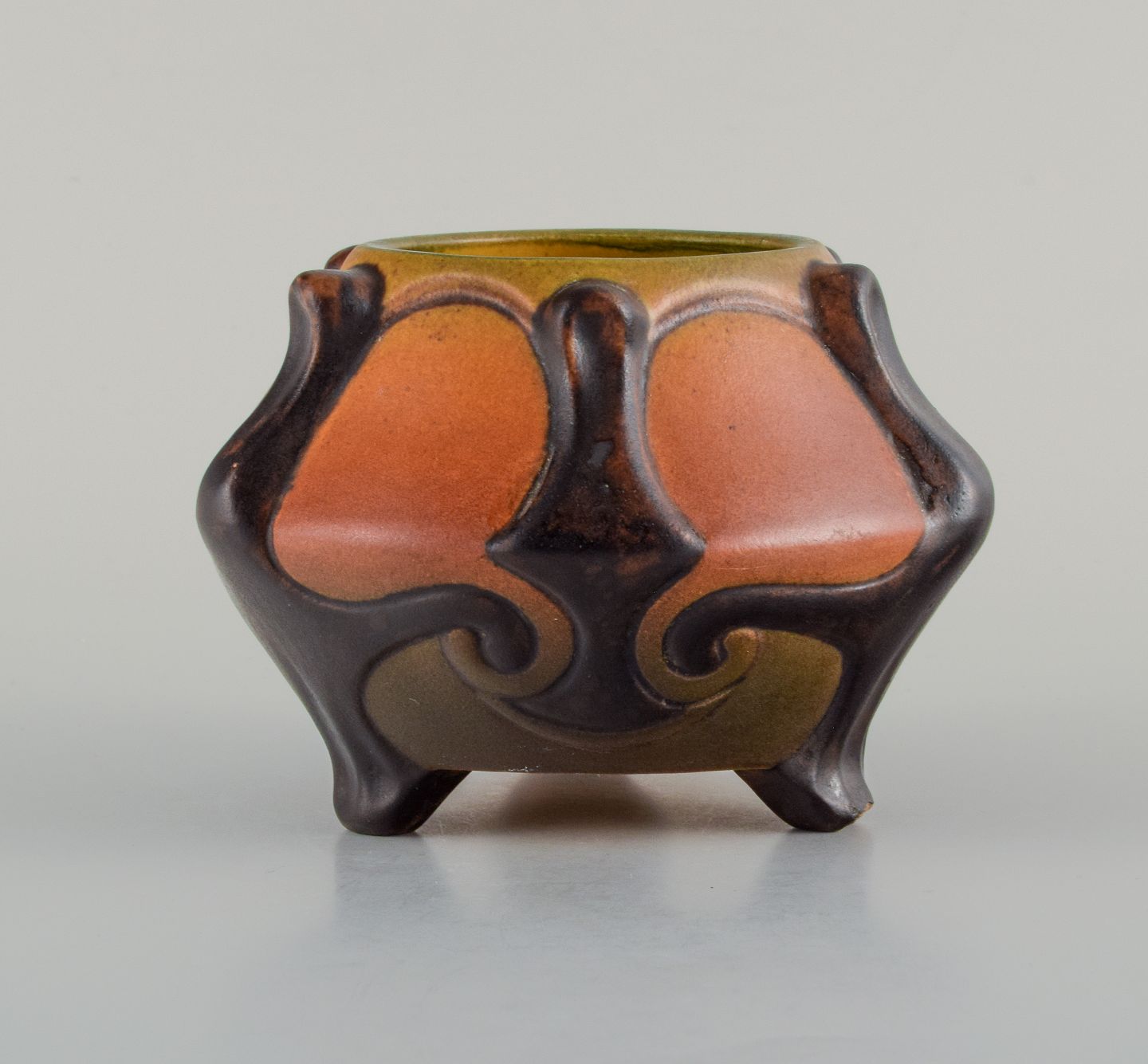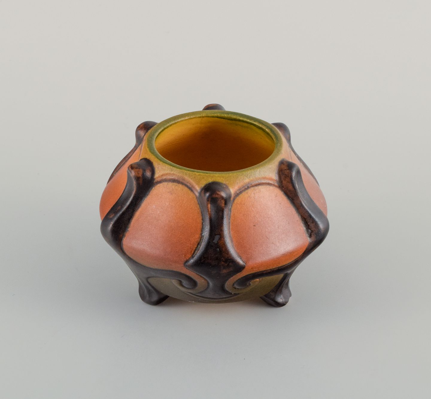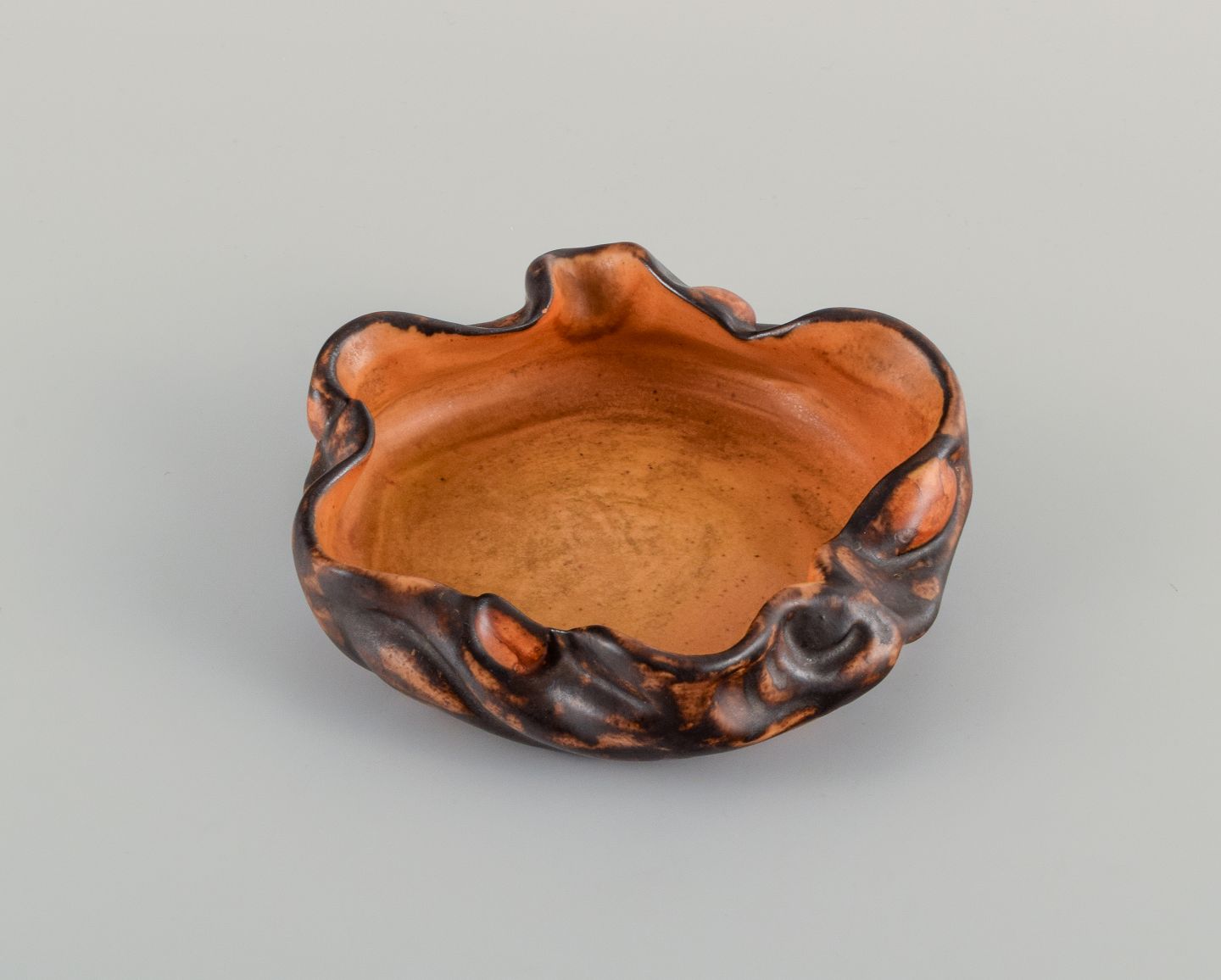 Ipsens enke. To art nouveau skåle i håndmalet glaseret keramik.