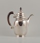 Sjælden Georg Jensen kaffekande med tilhørende flødekande og sukkerskål i sterlingsølv og tretårnet sølv.