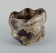 Unique stoneware vase with cream/black matte glaze. Hand modeled, and organically shaped.
