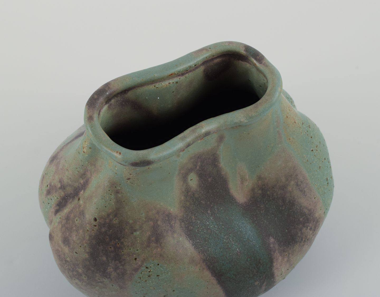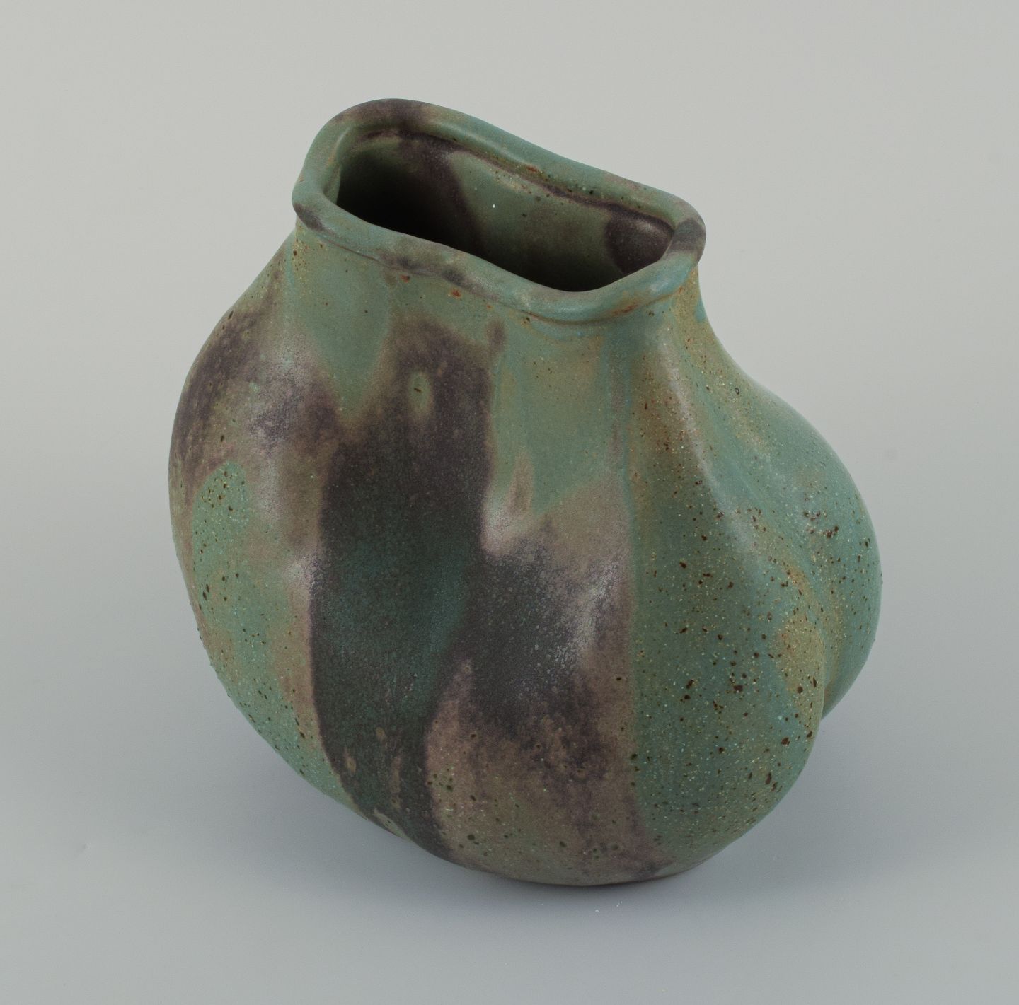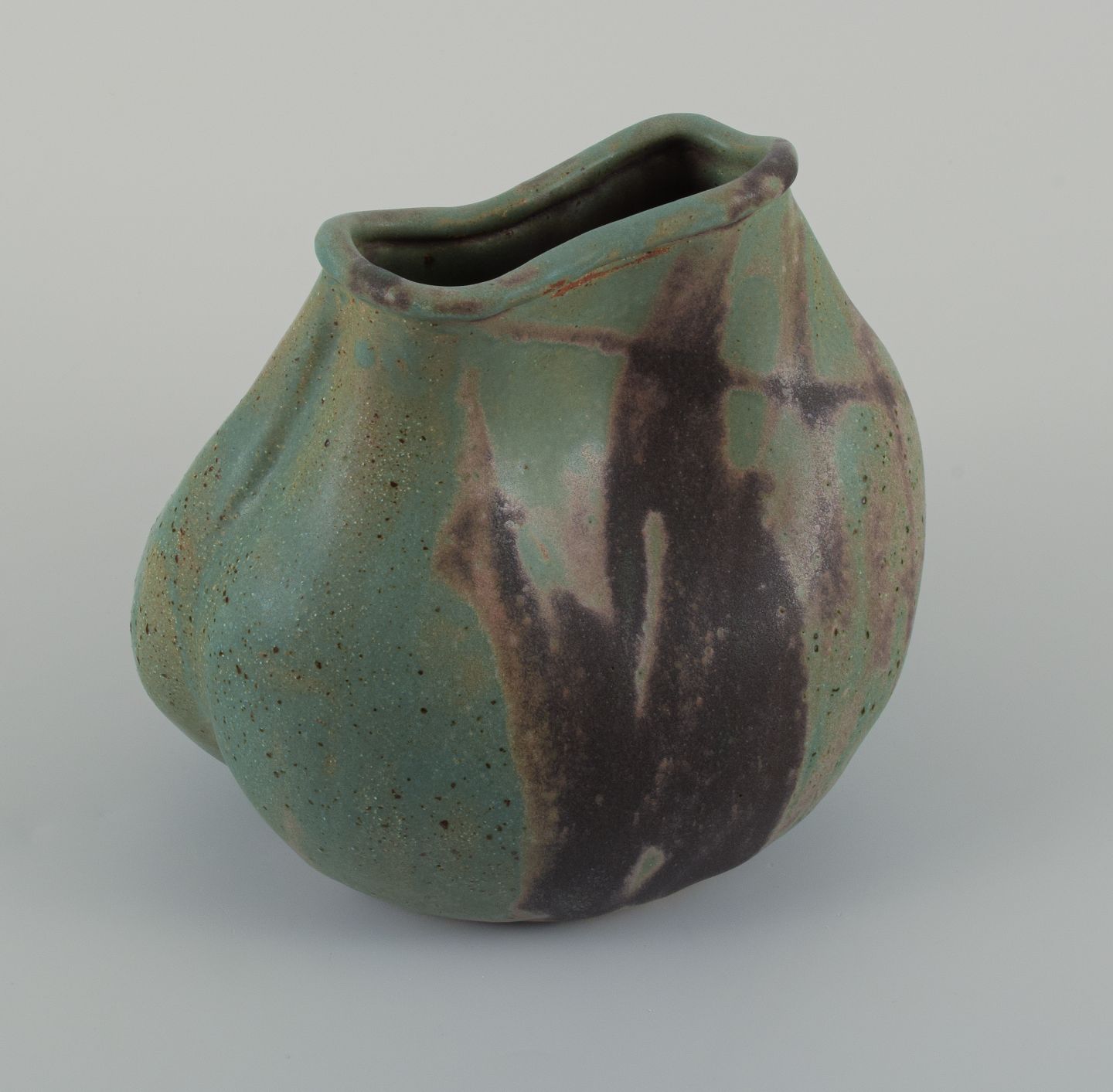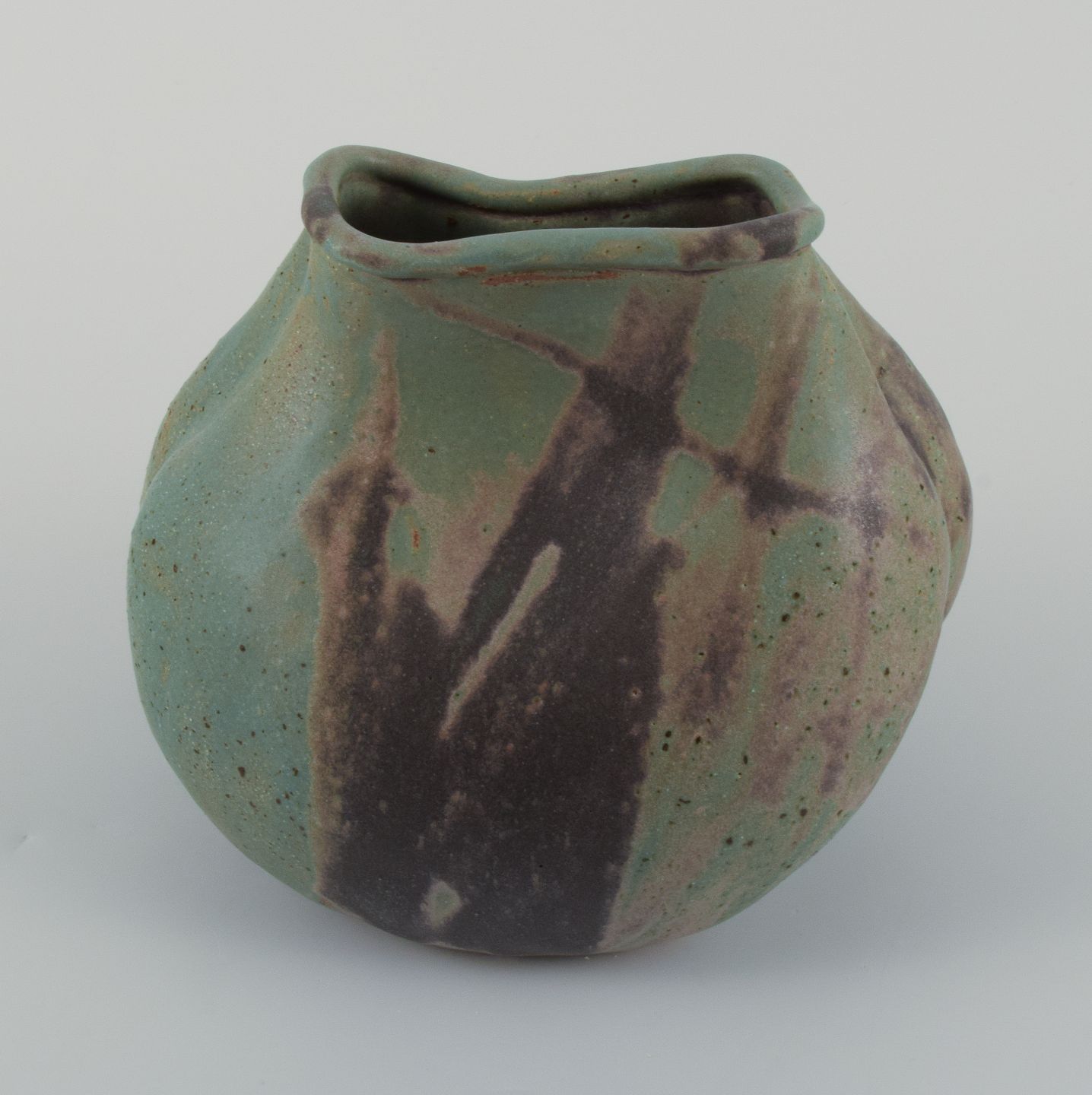 Unique seedpod vessel made from stoneware clay, with matte blue and brown glaze.