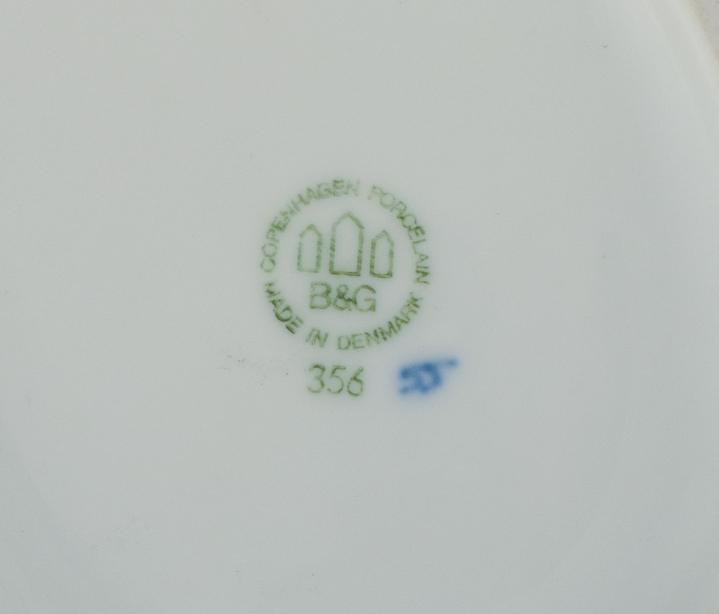Bing & Grøndahl, Kipling, a pair of saucers with handles.