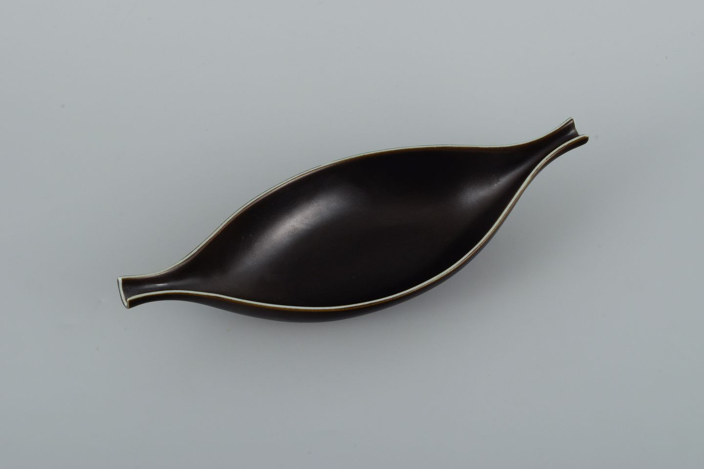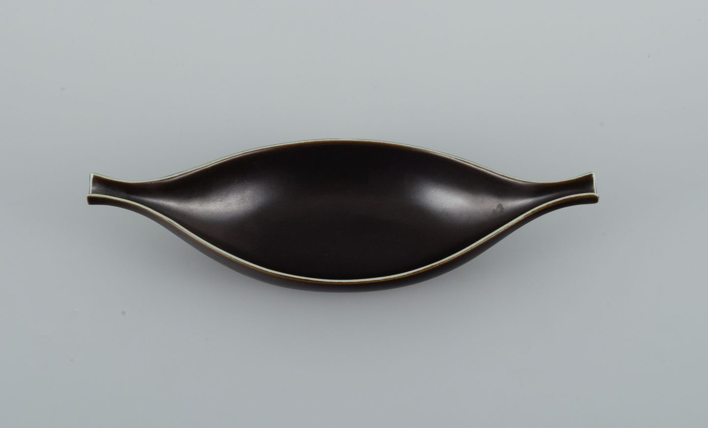 Stig Lindberg for Gustavsberg. "Pungo" ceramic bowl in black glaze. 1960s. In perfect condition. Dimensions: L 26.5 x D 10.0 x H 4.0 cm.