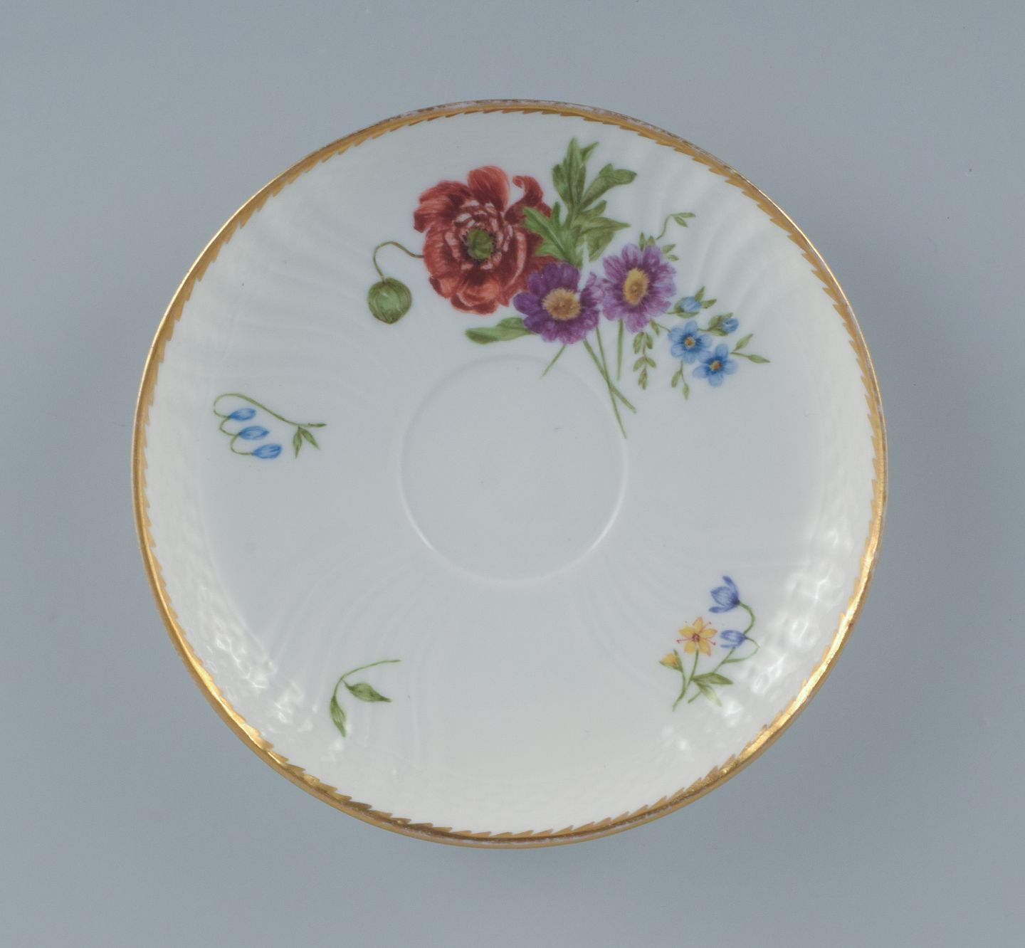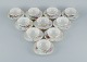 Et sæt på ti antikke thekopper med tilhørende underkopper.