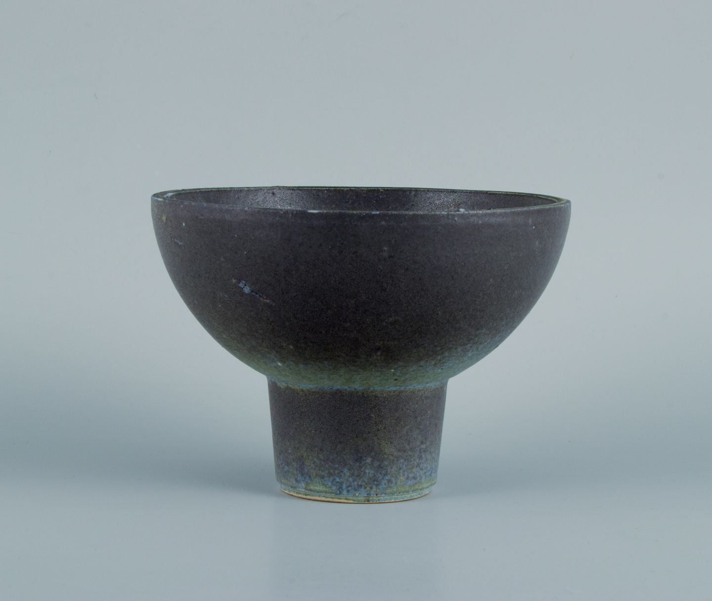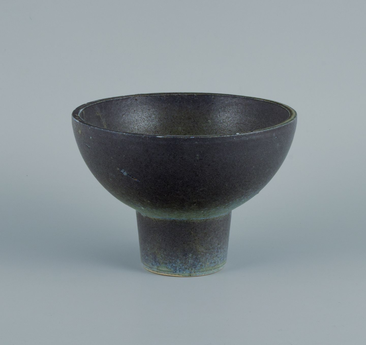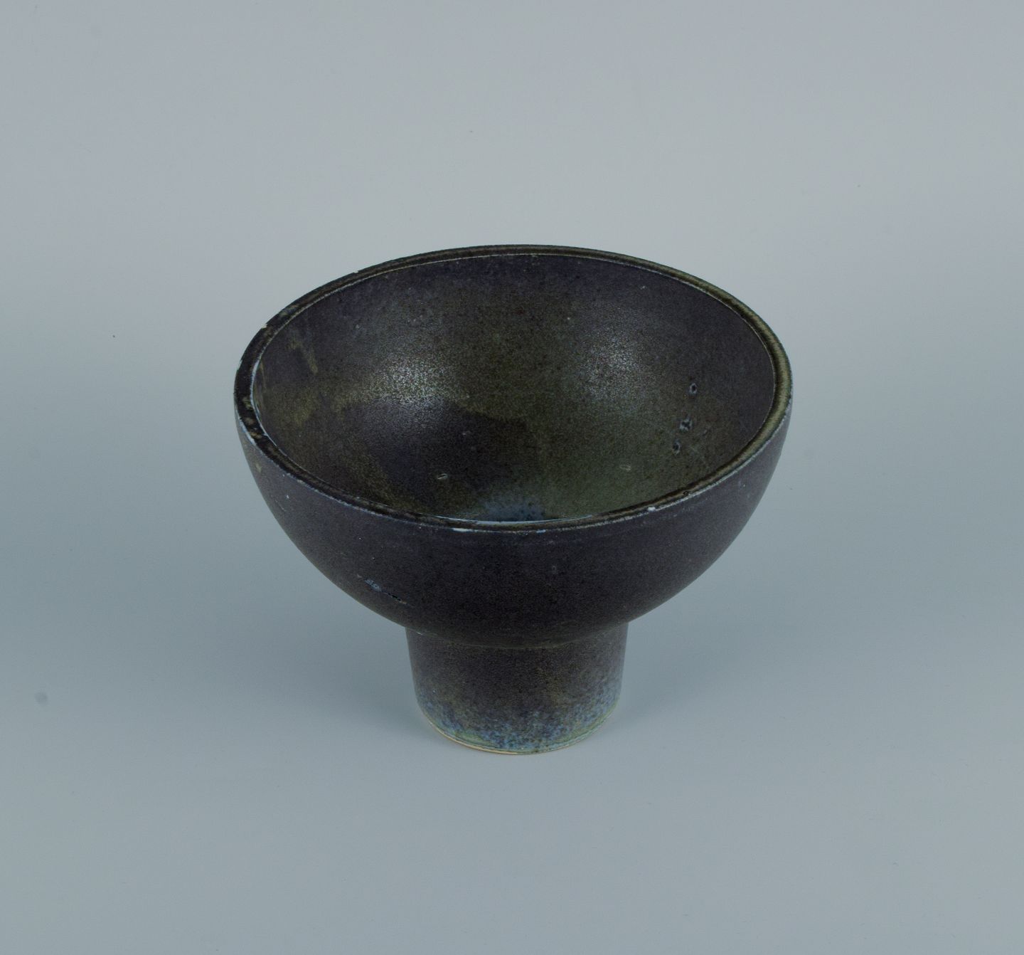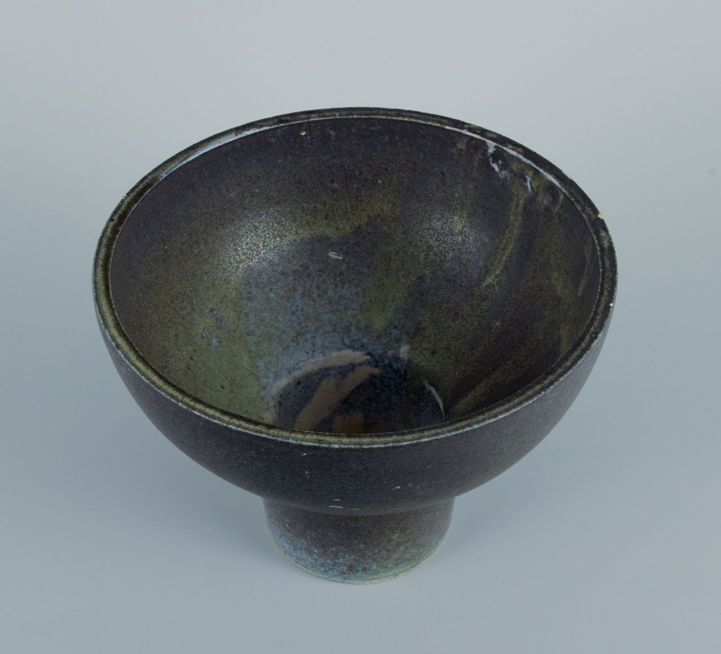 Unique vase in grey-green glaze. Approx. 1970/80s. In perfect condition. Dimensions: Diameter 17.0 x Height 12.0 cm.
