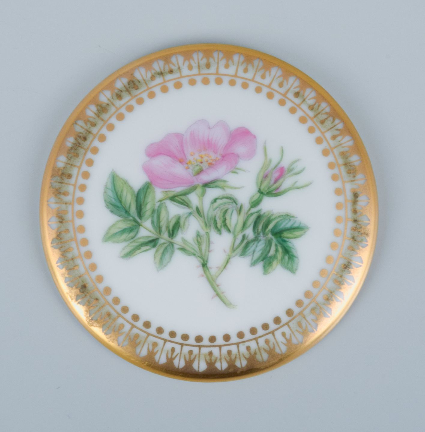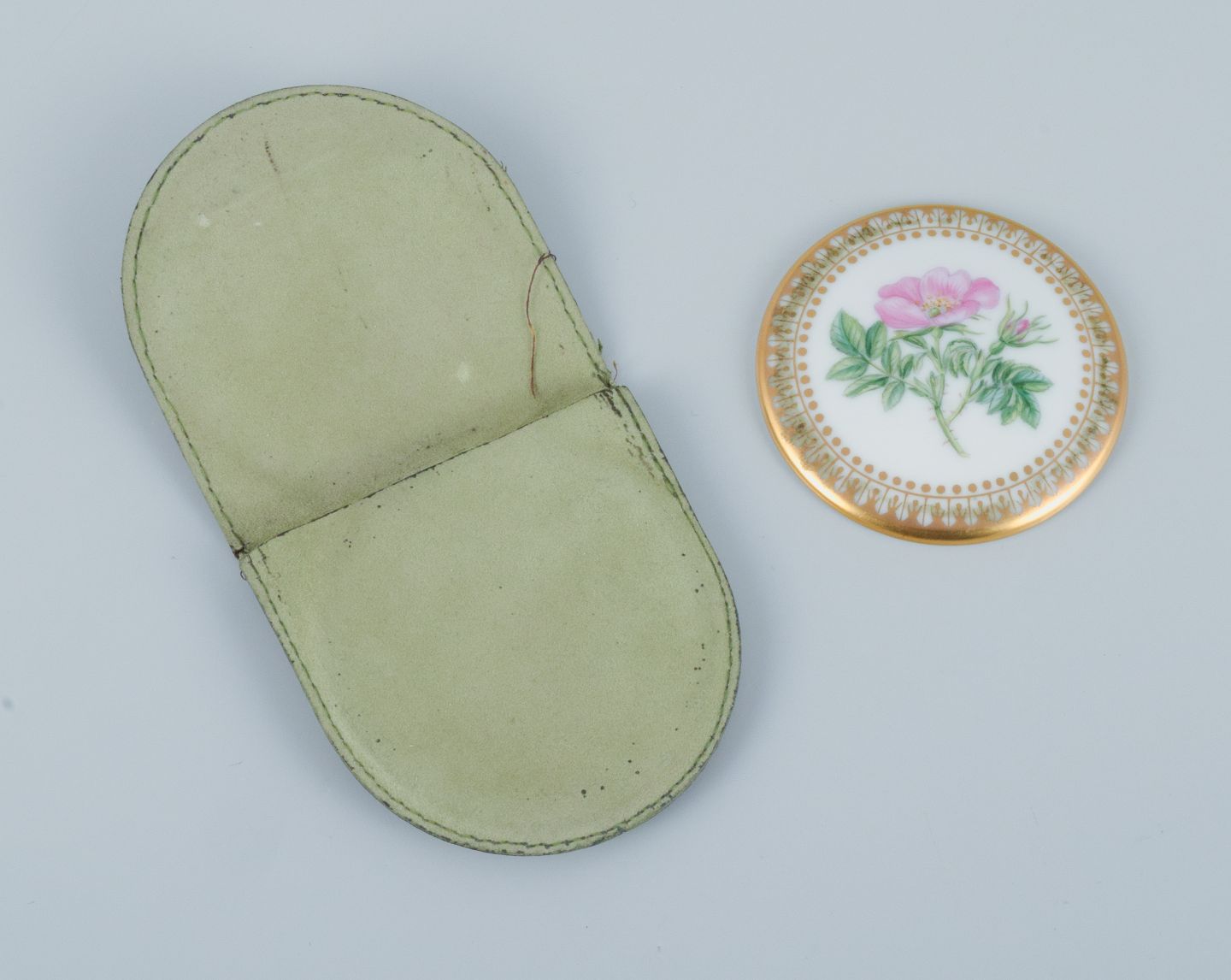 Royal Copenhagen Flora Danica sminkespejl i håndmalet porcelæn. Blomstermotiv og gulddekoration. Ca. 1980'erne Diameter: 6,5 cm. I flot stand.
