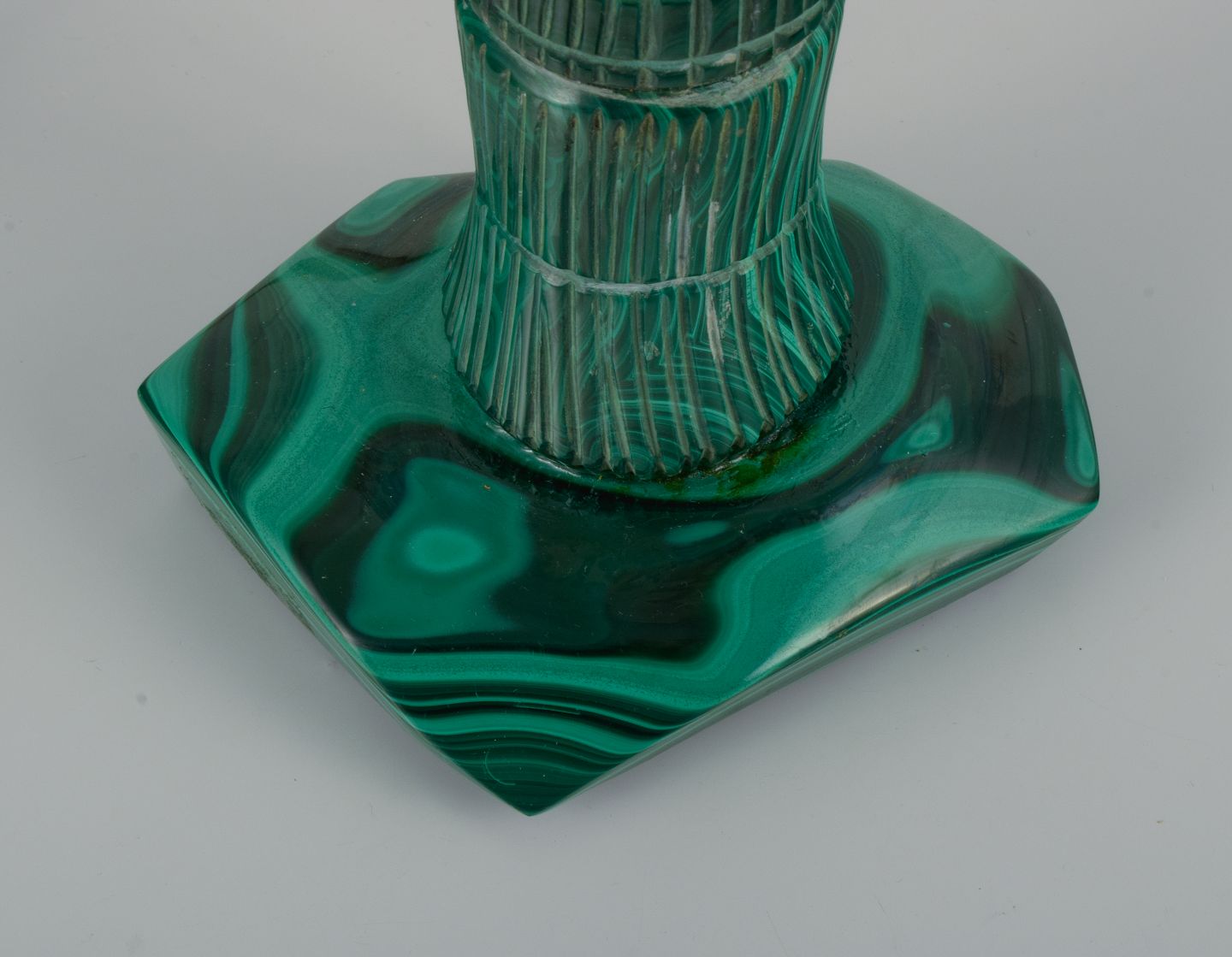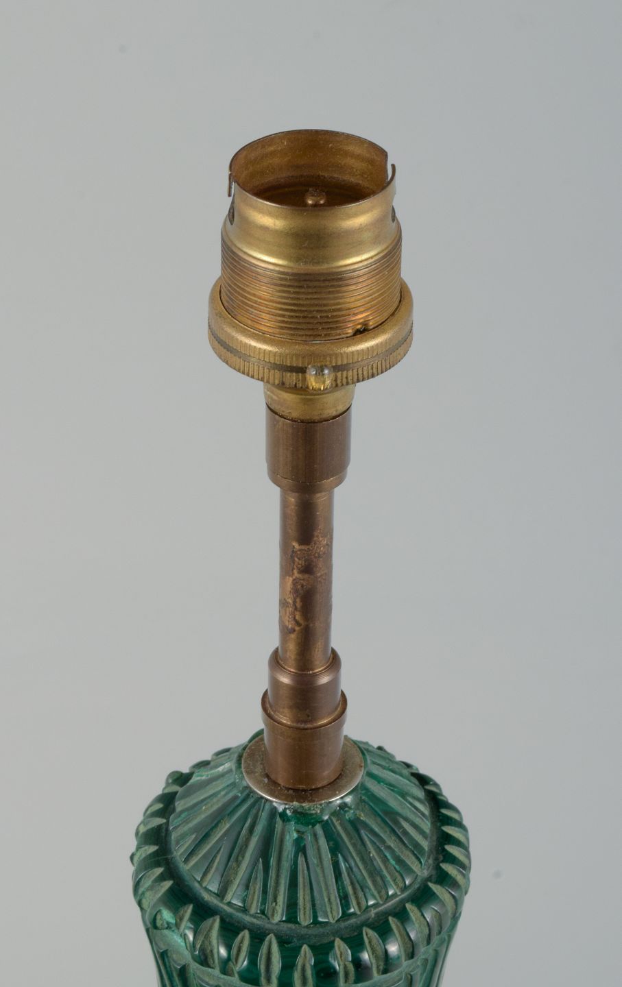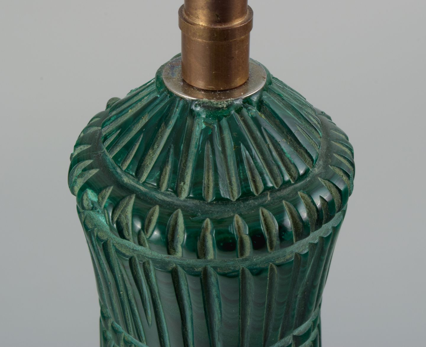 Fransk bordlampe i malakit. Midt 1900-tallet. I perfekt stand. Mål: H 39,0 (inklusiv fatning) x 15,5 cm.