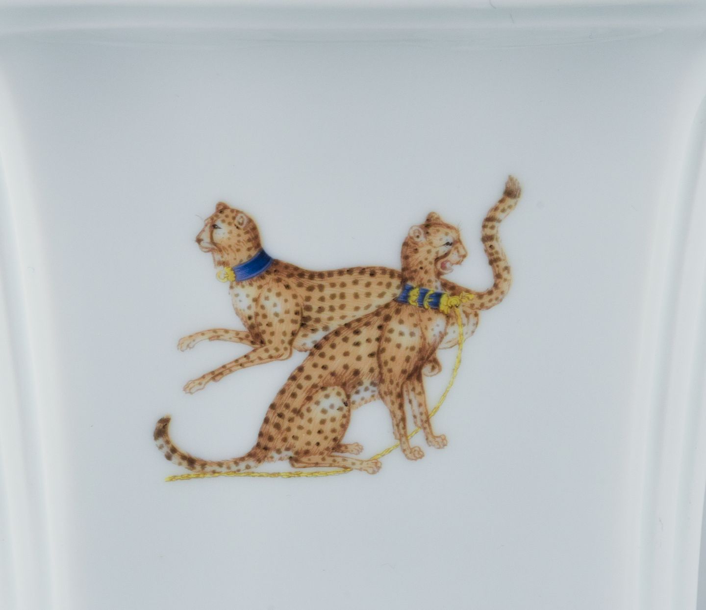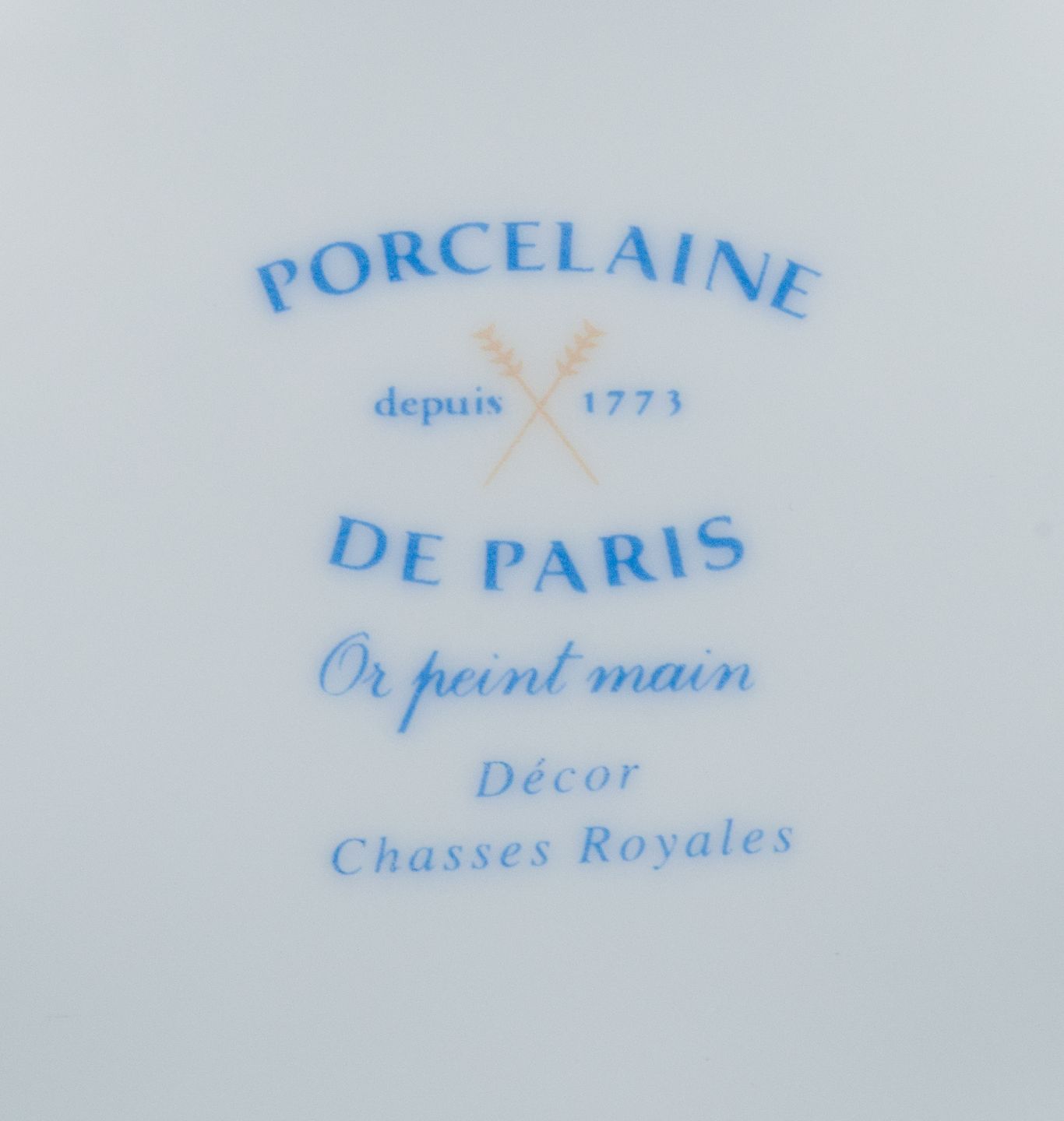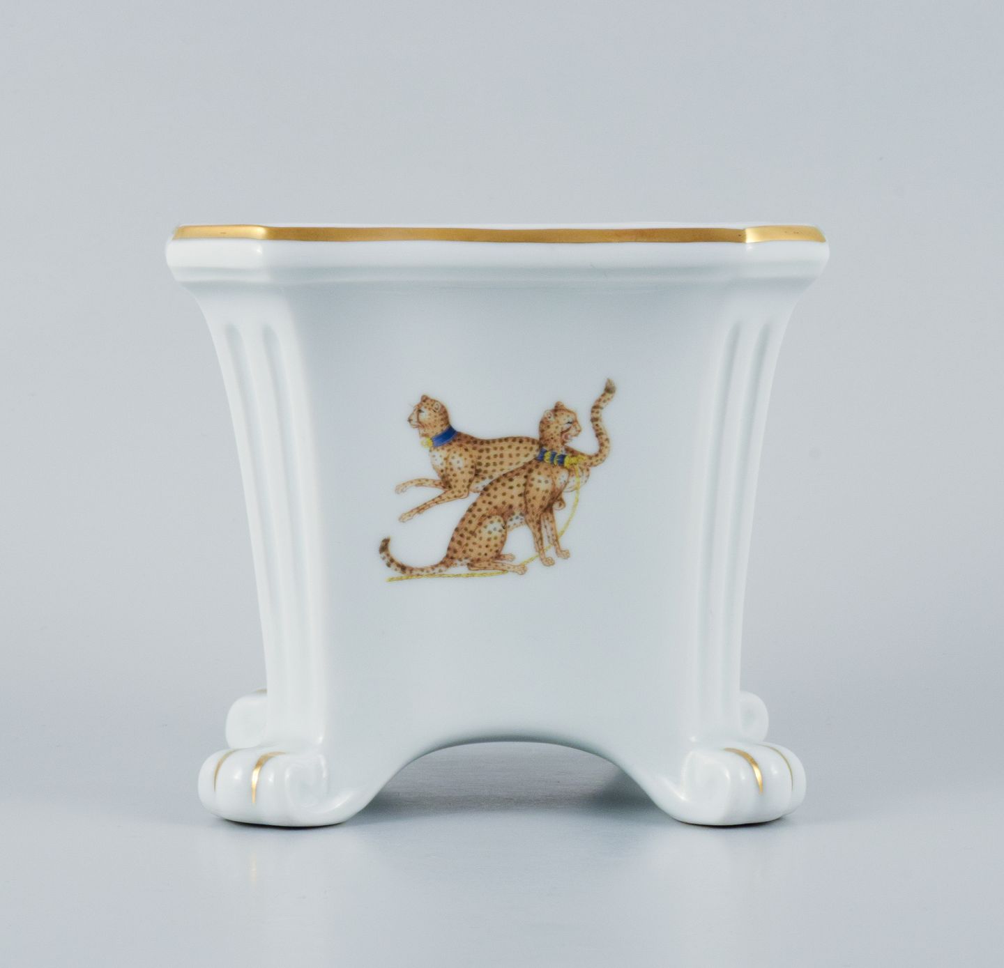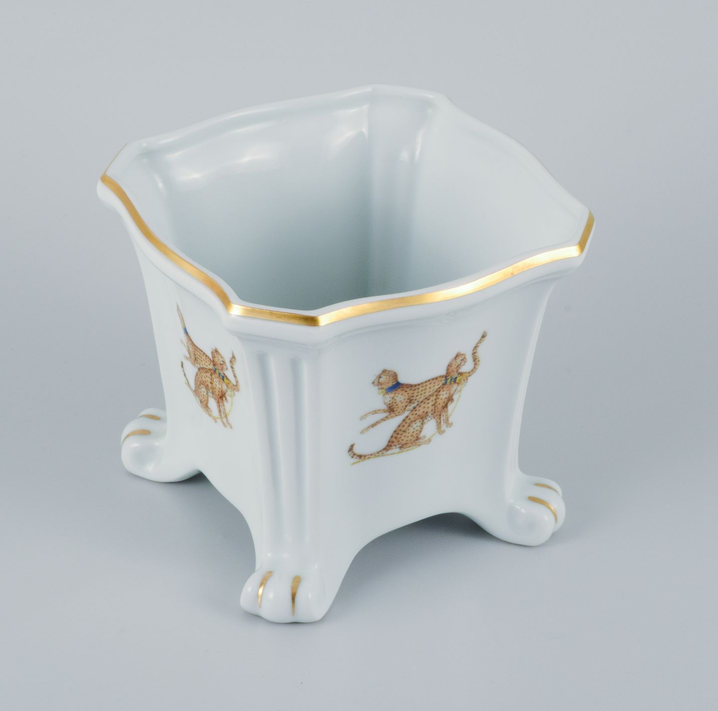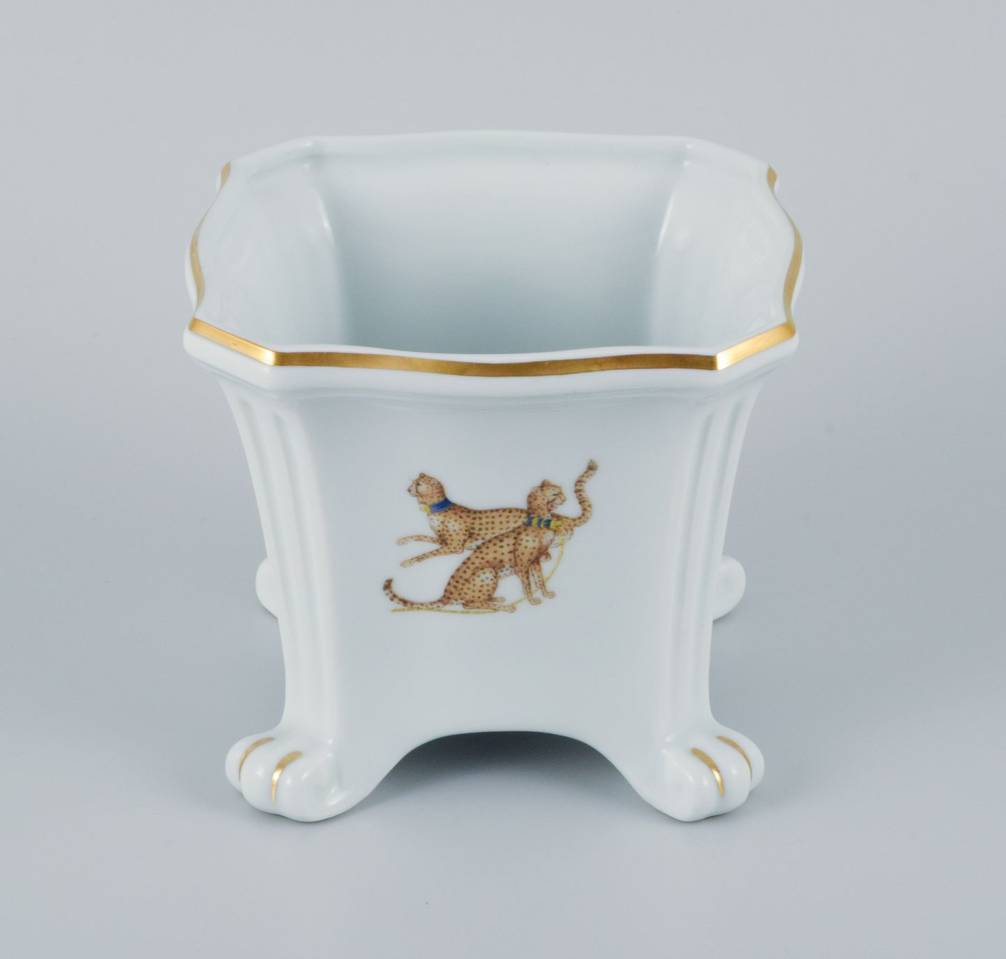 Porcelaine de Paris (Décor - Chasses Royales). Flower pot hand decorated with cheetahs and gold decoration. Approx. 1980s. In perfect condition. Marked. Dimensions: H 11.5 x D 13.5 cm.
