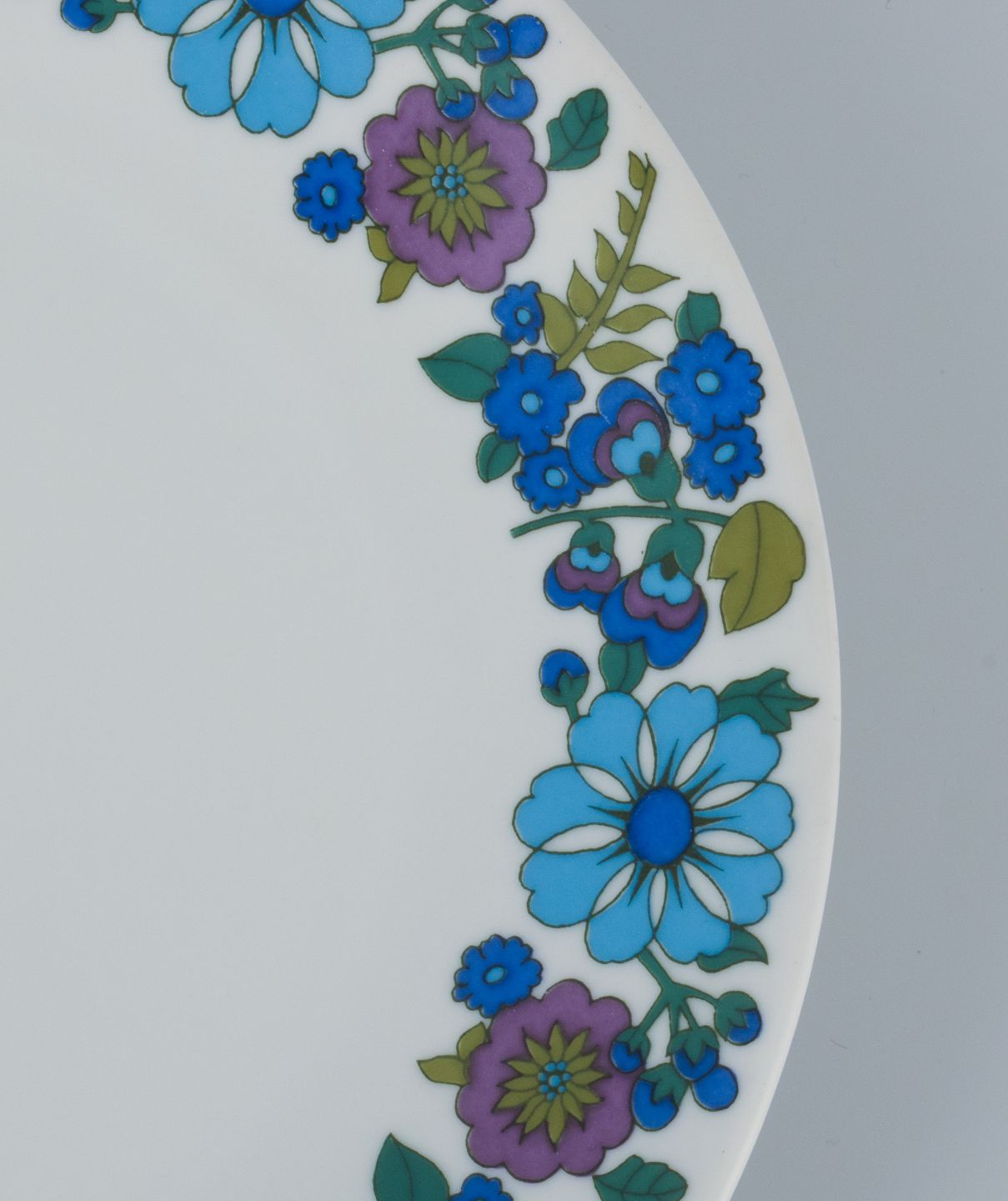 Et sæt på fem retro middagstallerkner i porcelæn med blomstermotiv.