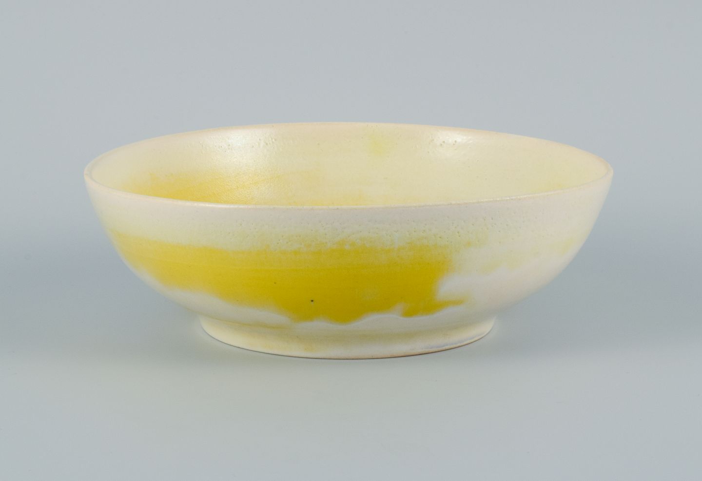 Georges Jouve (1910-1964), Frankrig. Unika skål på i glaseret stentøj i gule og cremefarvede nuancer.