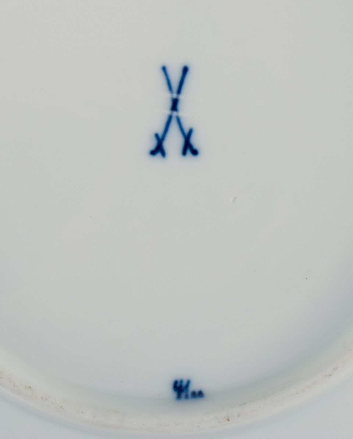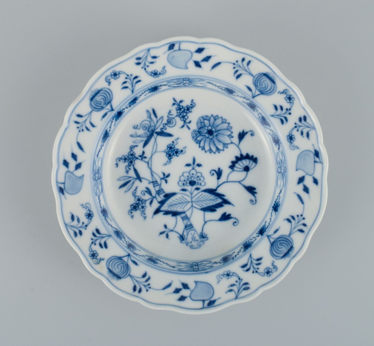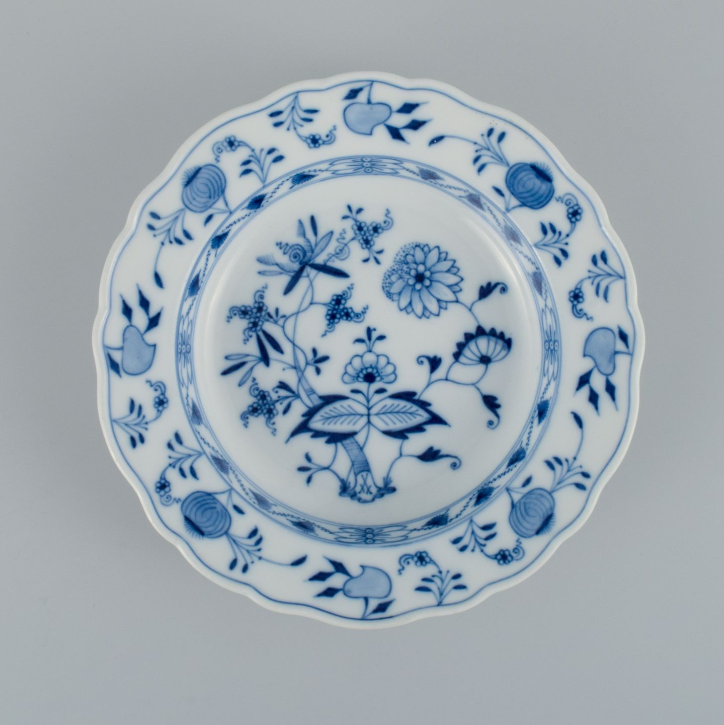 Meissen, et sæt på tre dybe tallerkner, håndmalet, løgmønstret. Sent 1800-tallet. I perfekt stand. Tredje sortering. Stemplet. Mål: D 23,4 x H 5,0 cm.