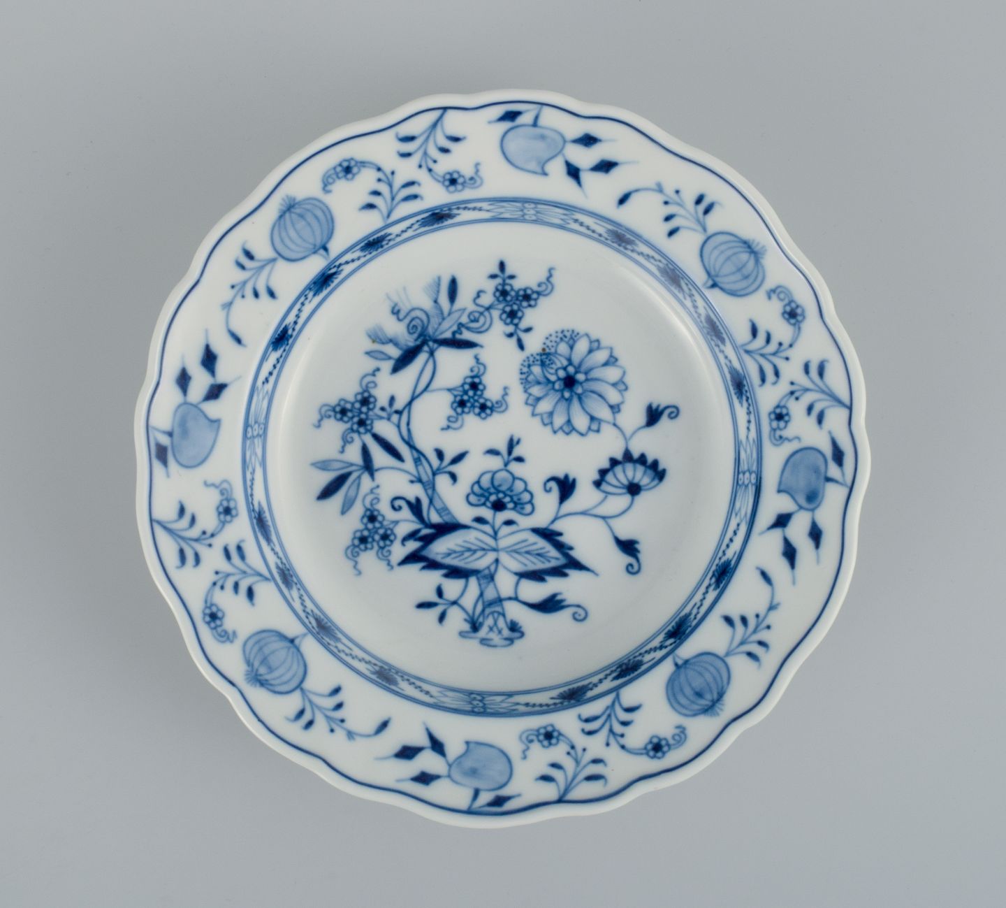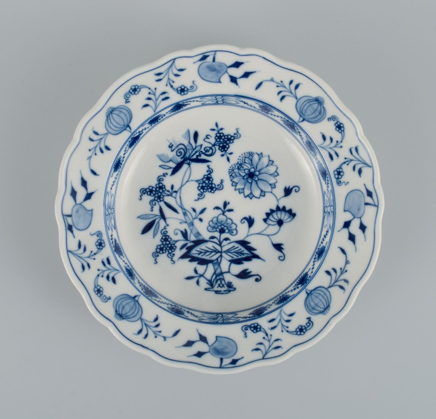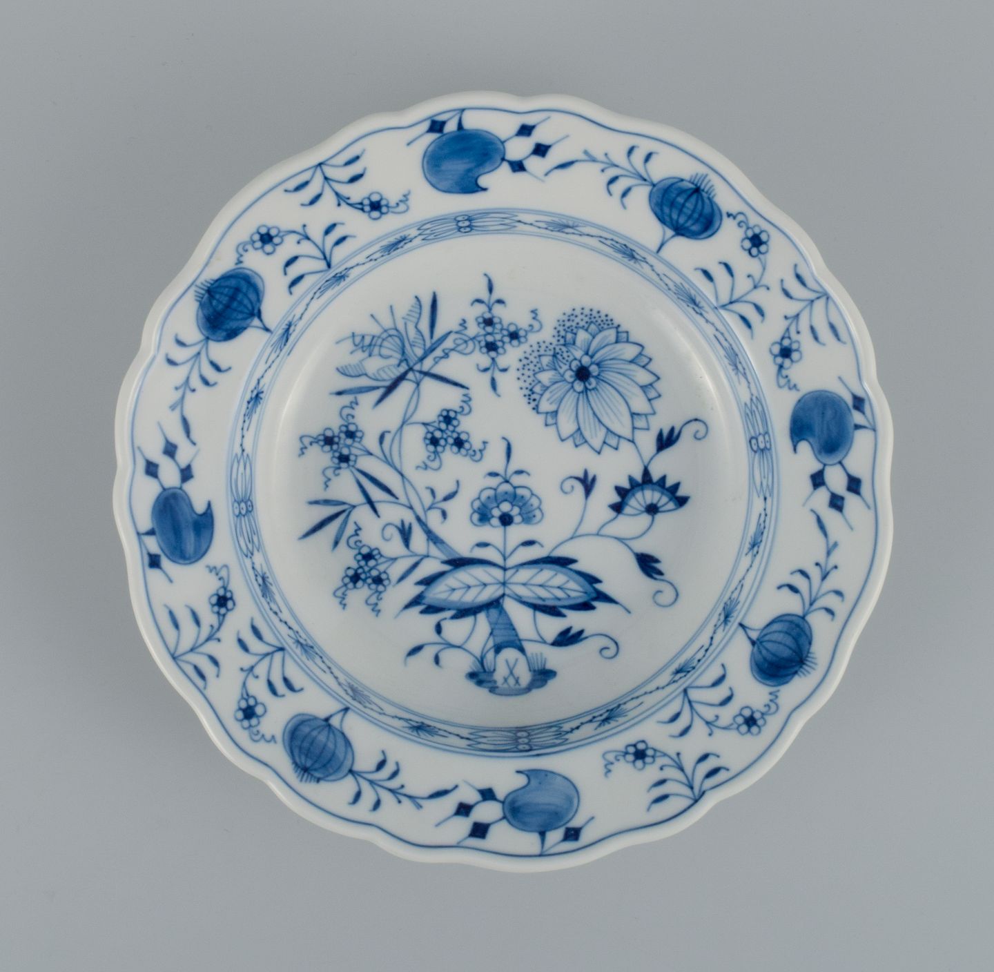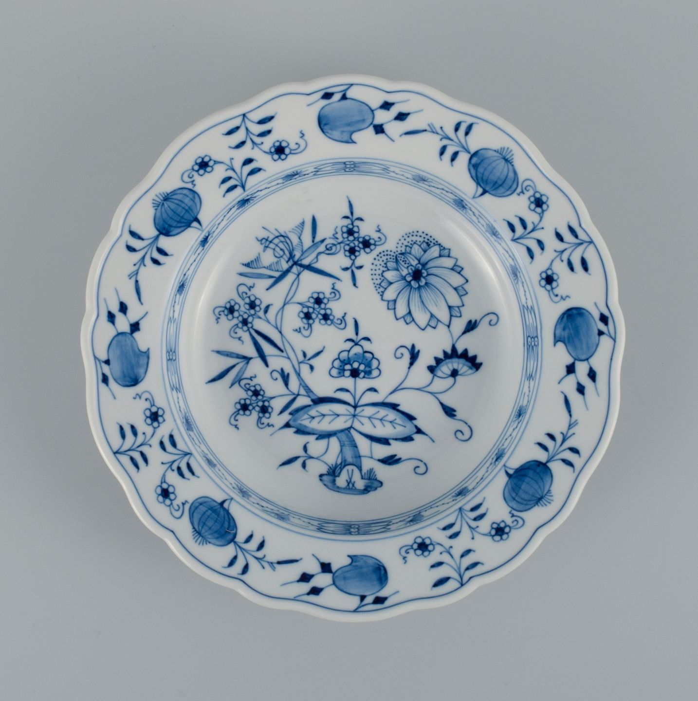 Meissen, et sæt på fire dybe tallerkner, håndmalet, løgmønstret.