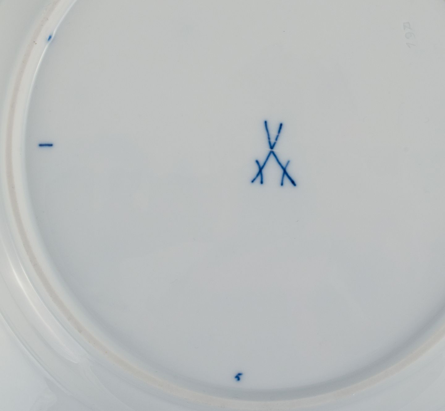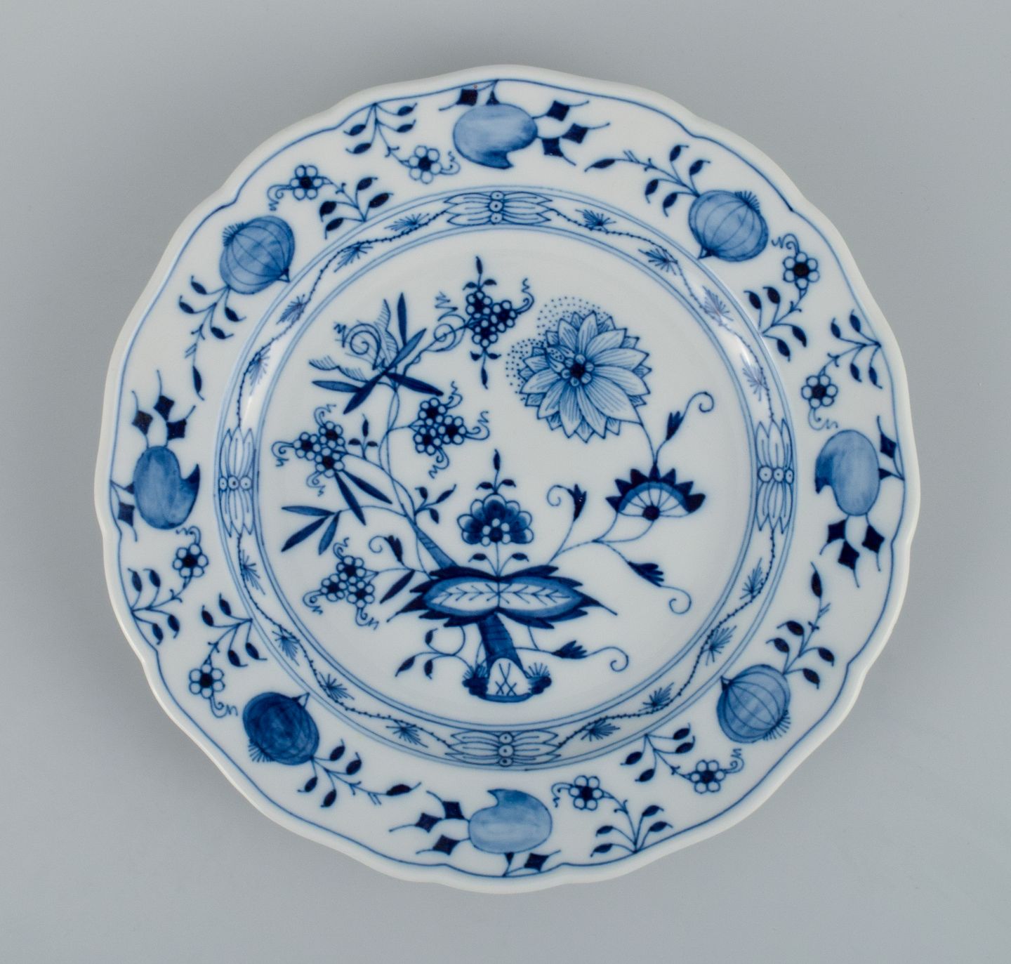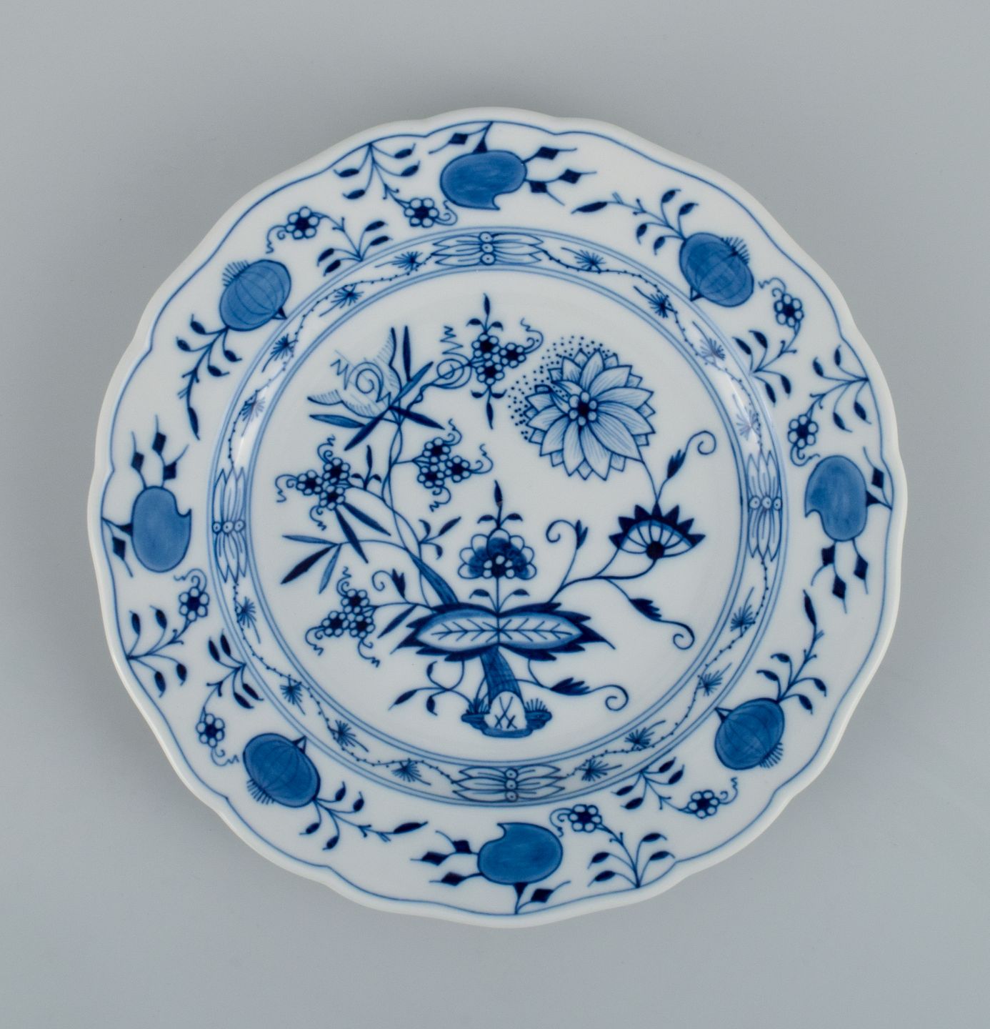 Meissen, a set of six Blue Onion dinner plates. Approx. 1900. Fourth factory quality. In perfect condition. Marked. Dimensions: D 25.0 x H 3.0 - 3.5 cm.