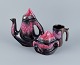 Vallauris, Frankrig, kaffekande, lågskål og et kaffekrus. Lystreglasur.