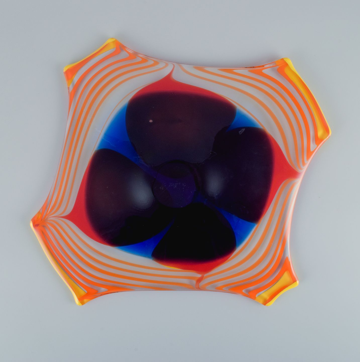 Ales Valner, Tjekkiet. Unika kunstglas, kolossalt fad i retro/psykedelisk design. 1960/70'erne. I perfekt stand. Mål: D 43,0 x H 3,0 cm.