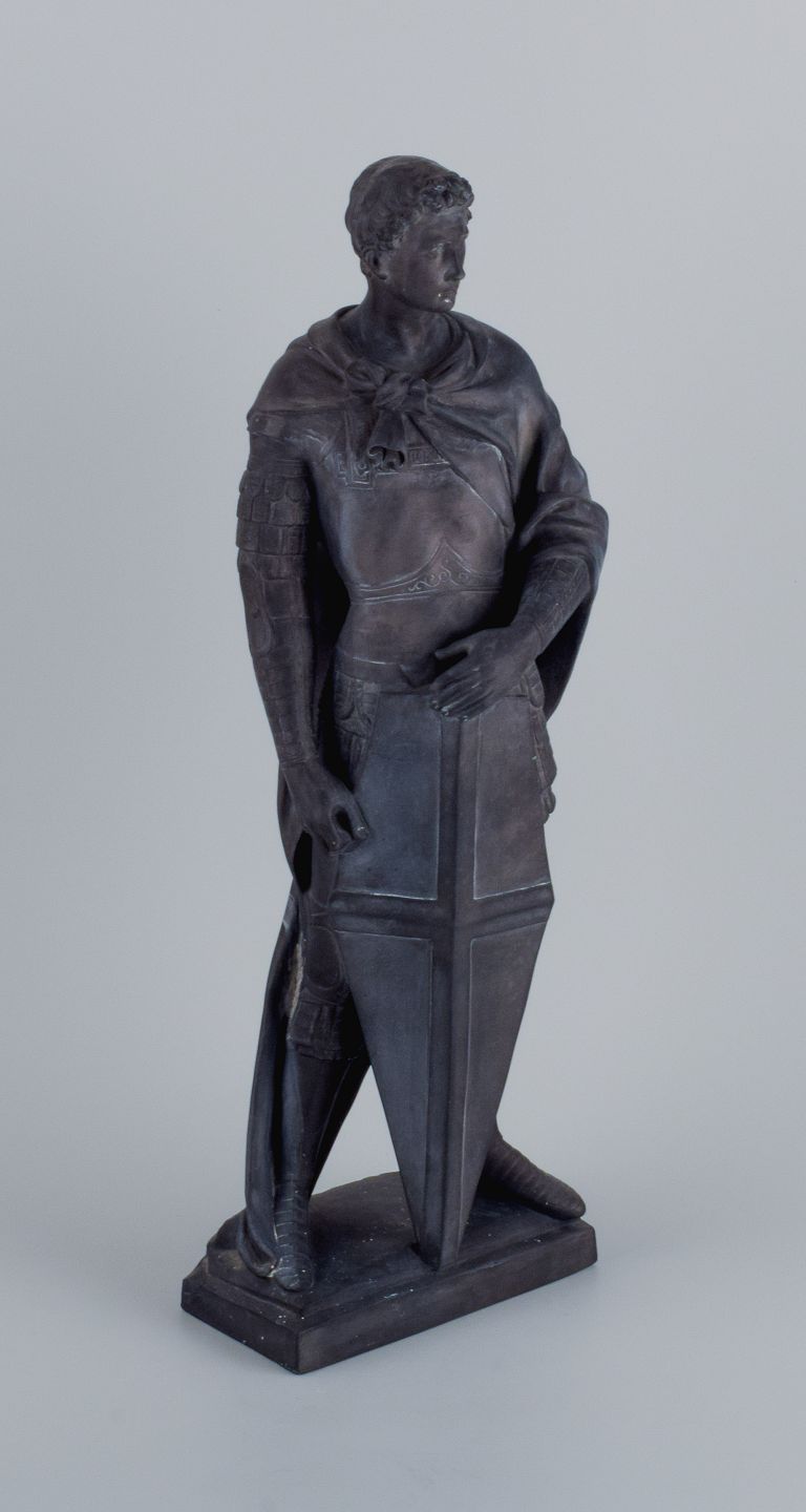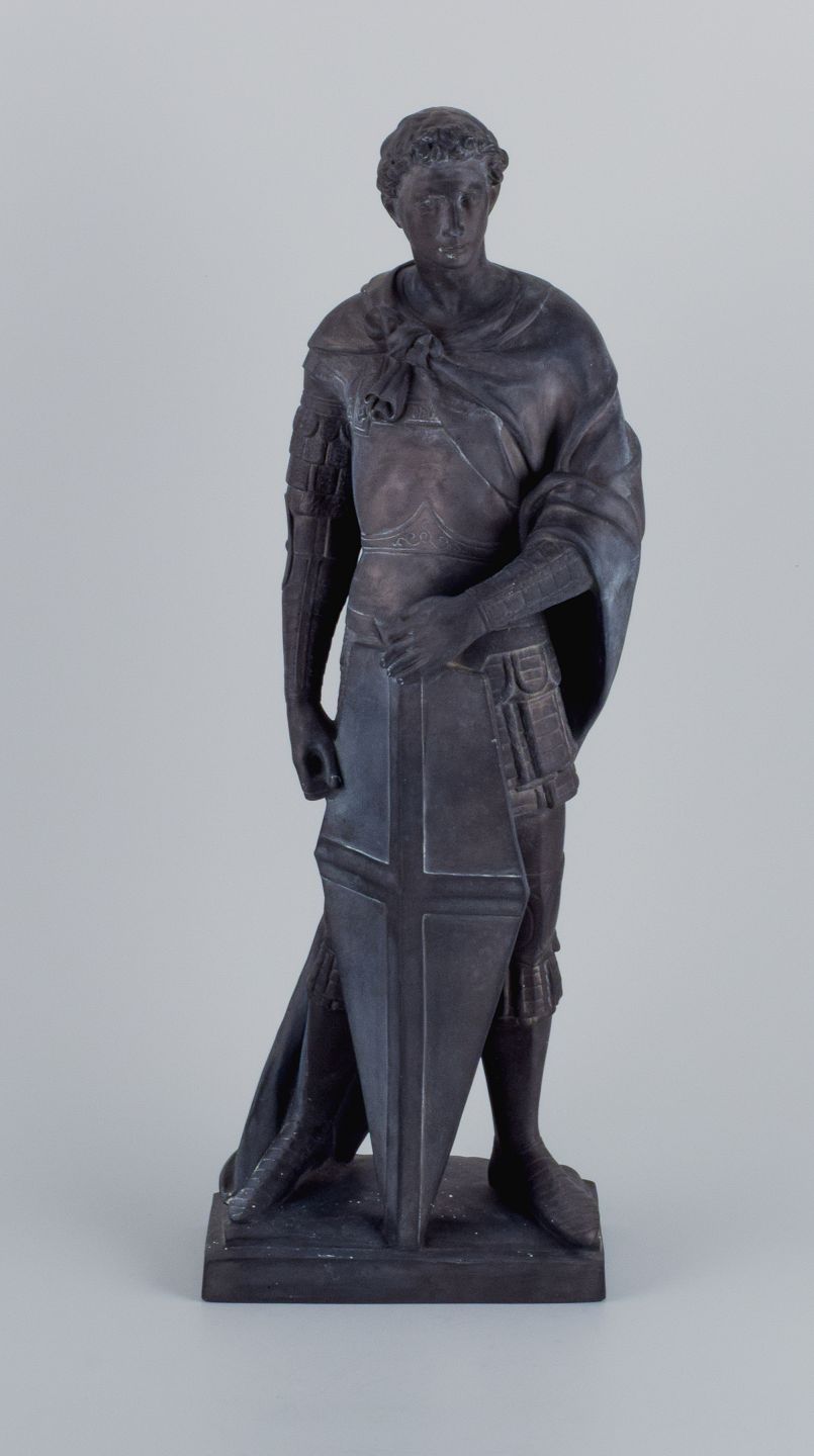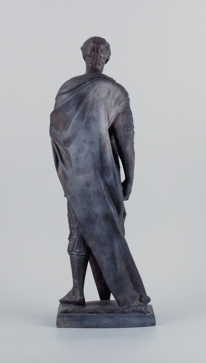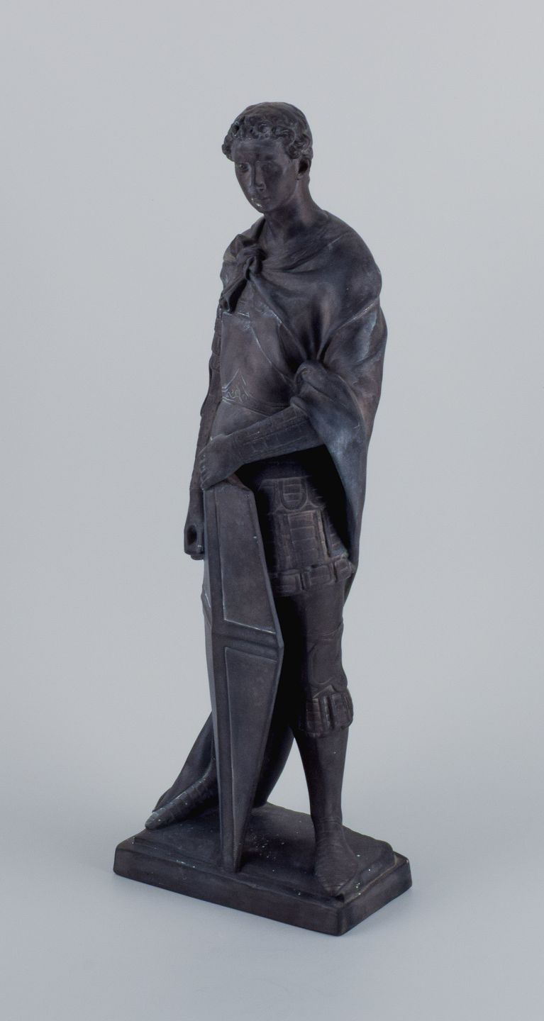 L. F. Jørgensen, Denmark, large and impressive terracotta sculpture of Roman warrior with shield.