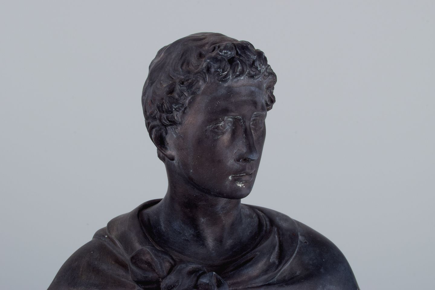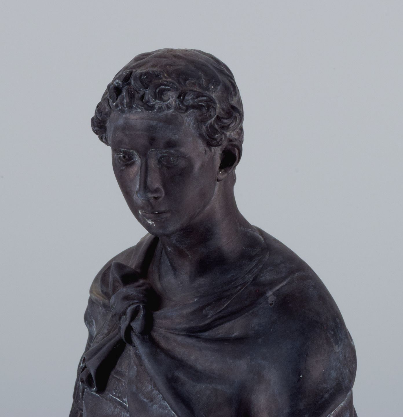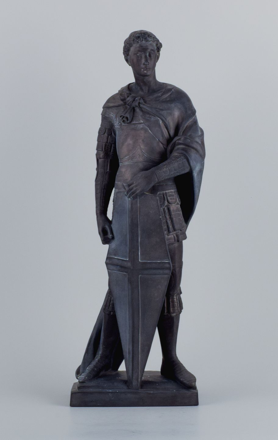 L. F. Jørgensen, Denmark, large and impressive terracotta sculpture of Roman warrior with shield.
