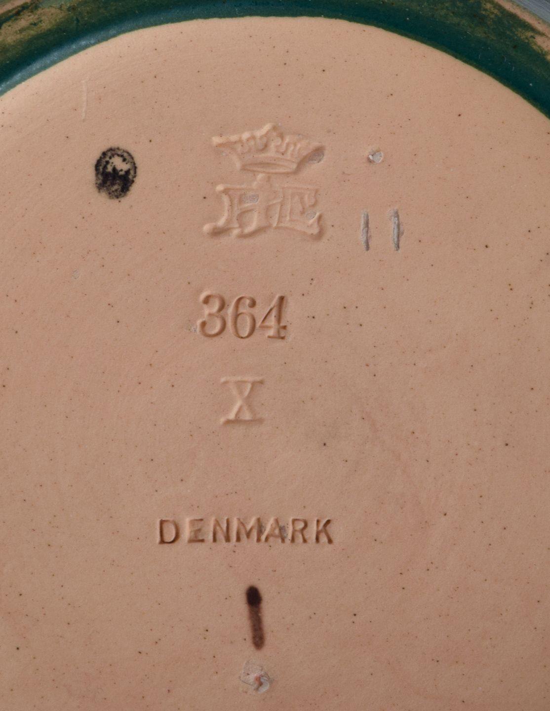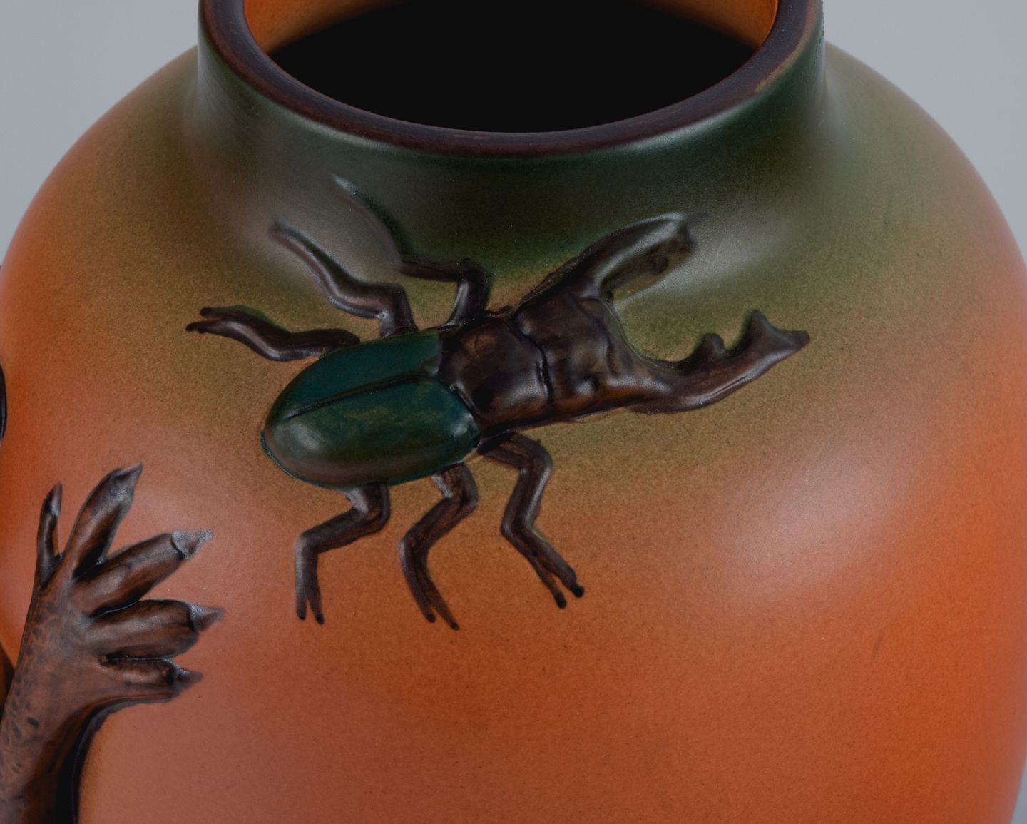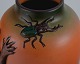 Ipsens Enke, Danmark. Vase i håndmalet glaseret keramik med firben og bille.