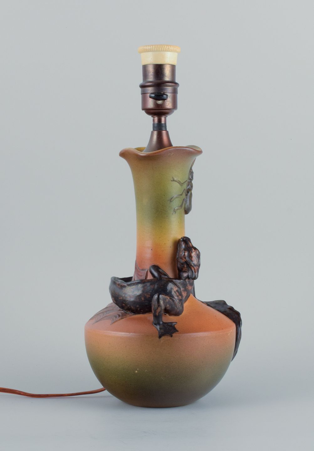 Ipsens Enke, sjælden bordlampe med øgle og bille. 1920/30'erne. I flot stand. Stemplet. Mål: D 14,0 x H 36,0 cm.