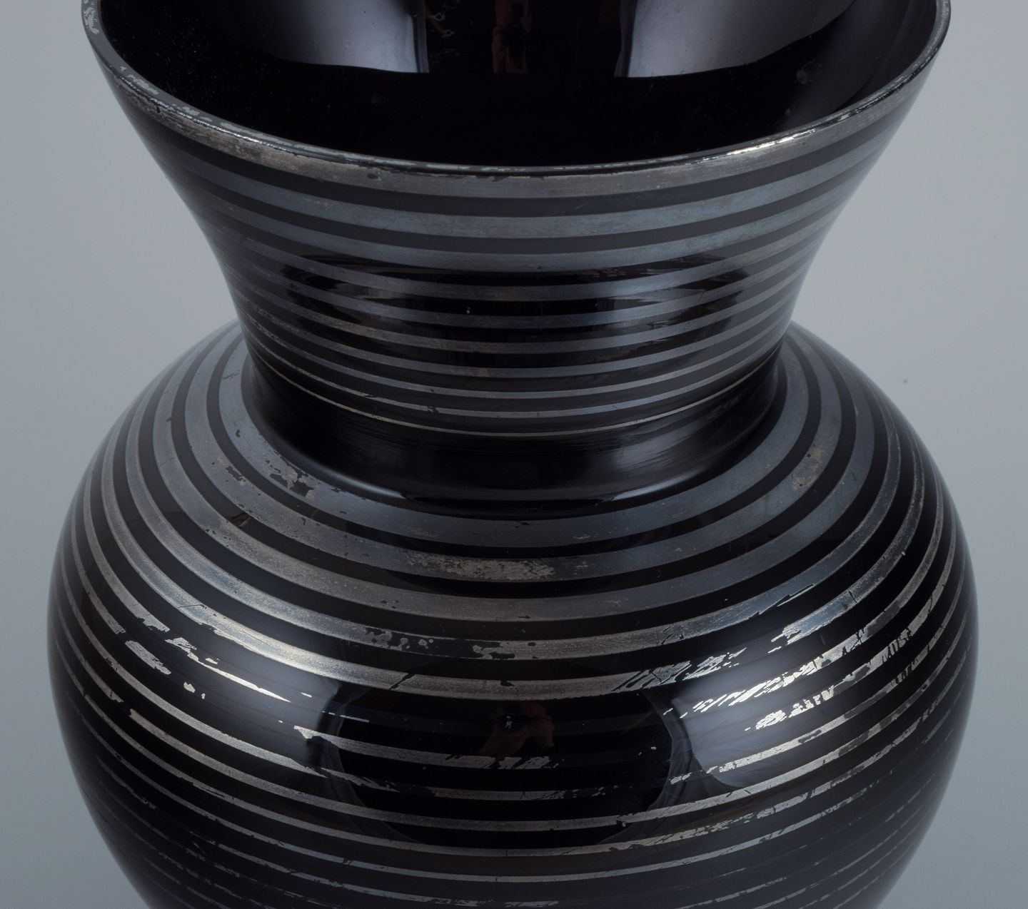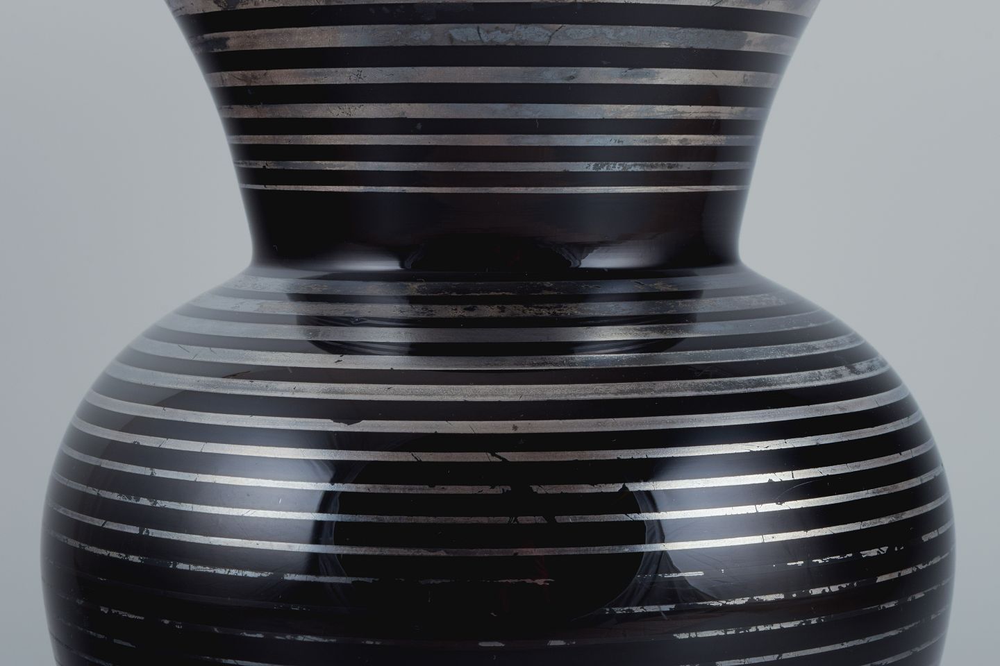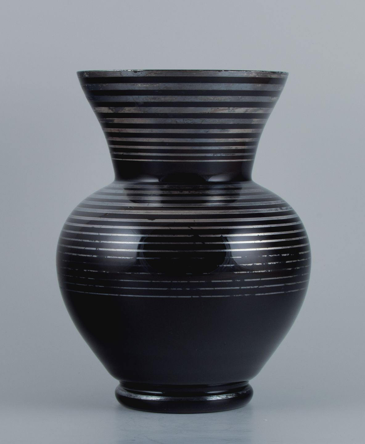 Art Deco glasvase, Tyskland. Med horisontale sølvindlæg.
