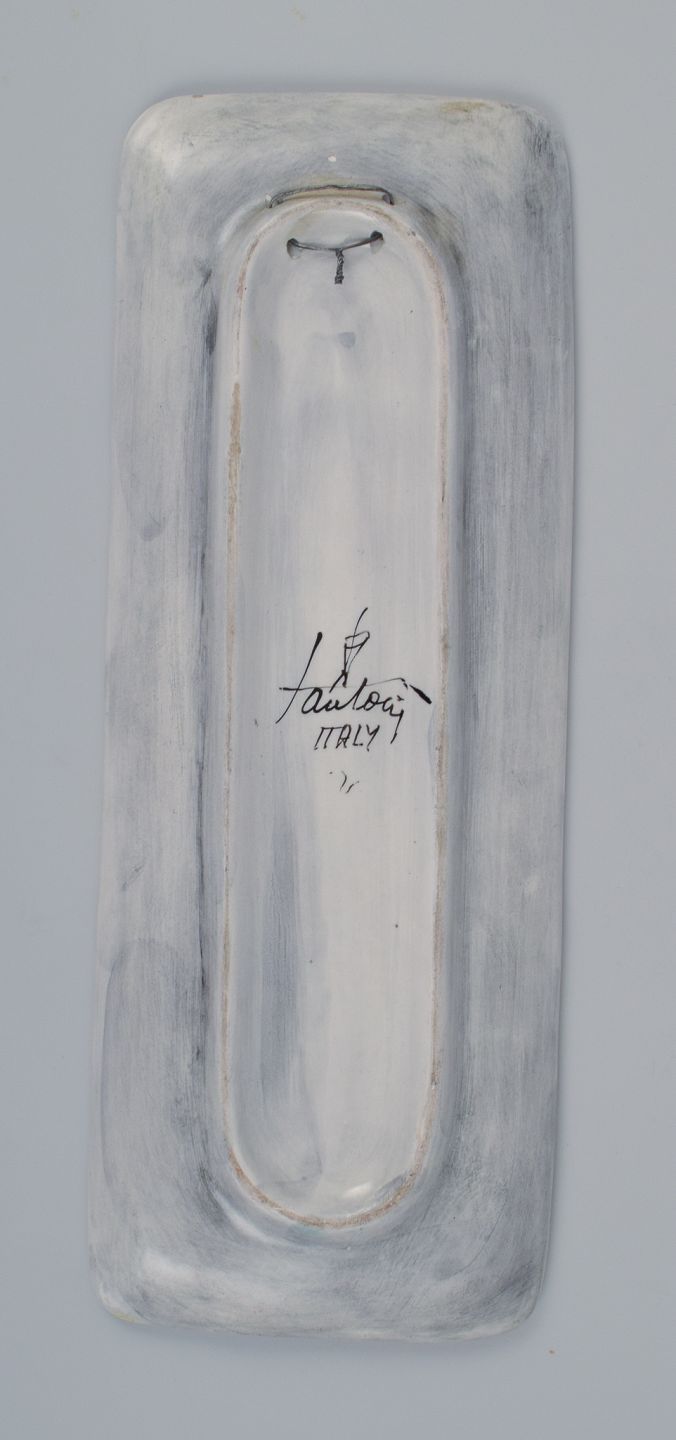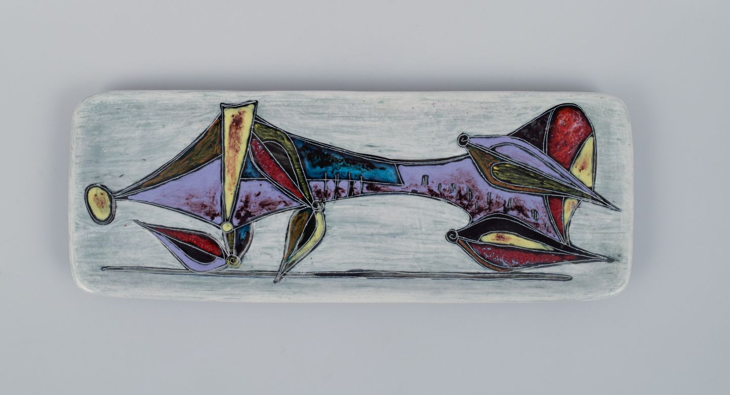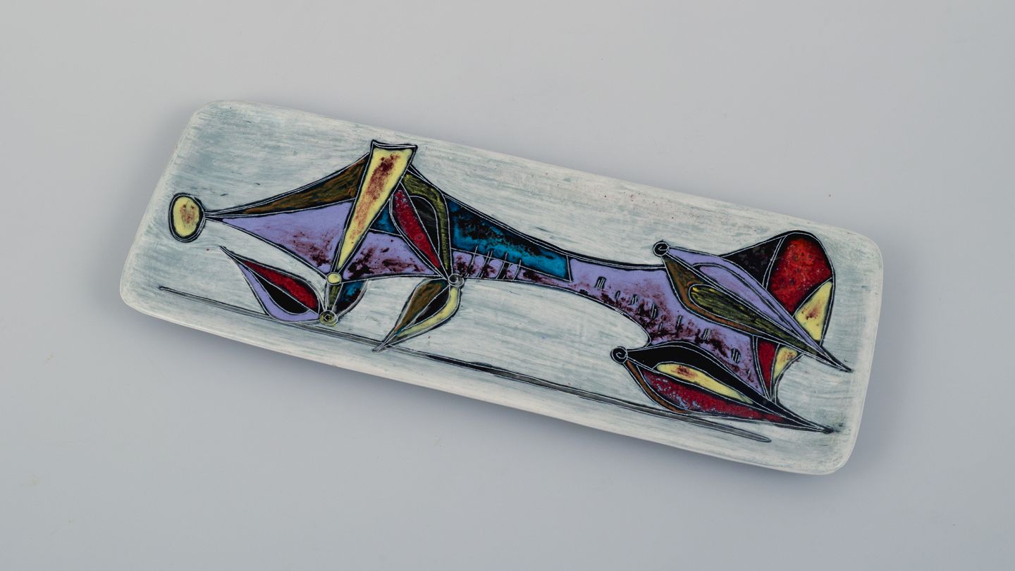 Marcello Fantoni, Italien, unika keramikfad. Dekoreret med kubistisk figur. 1960/70’erne. Signeret. I perfekt stand. Mål: L 30,5 x D 11,3 cm.