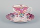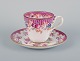 Sarreguemines, France, two pairs of coffee cups and a tea cup in porcelain, hand painted with floral motifs. Approx. 1870s. Marked. In excellent condition with minor signs of use. Coffee cup: H 6.3 x D 6.7 cm.