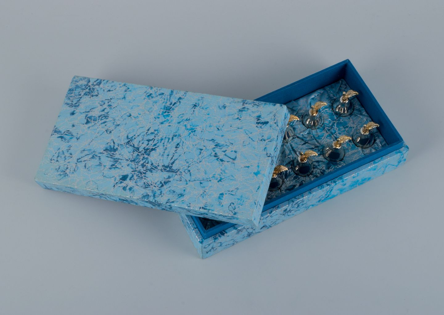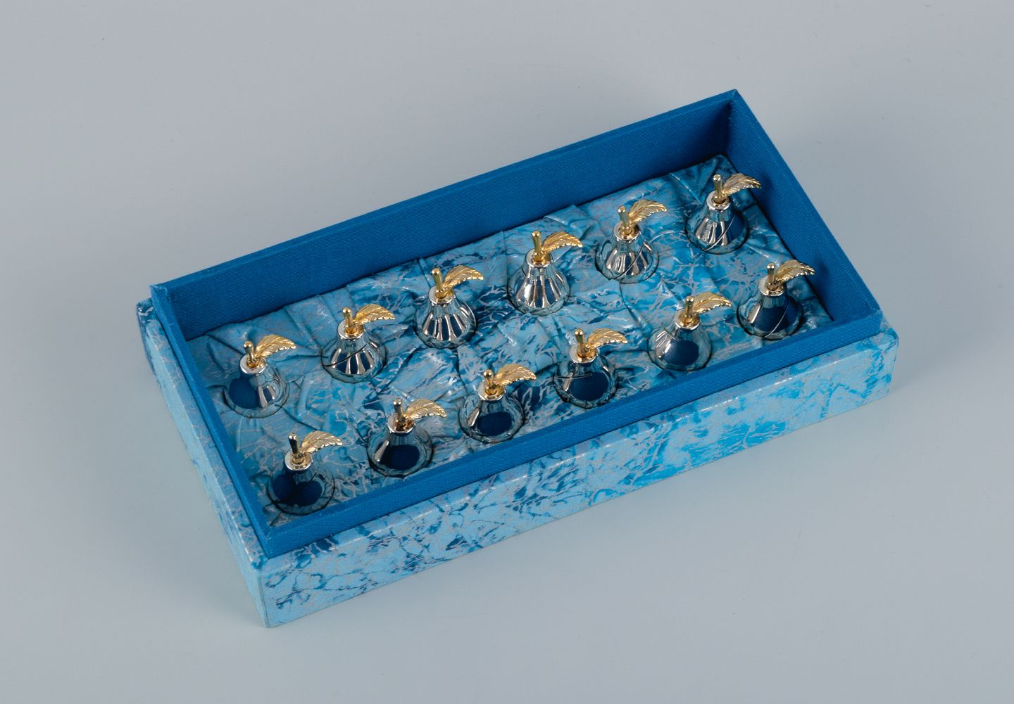 Christofle, Frankrig. Tolv bordkortsholdere i form af miniature-pære i nysølv, forgyldt stilk. 1960'erne I perfekt stand. Originalæske medfølger. Mål: H 3,2 x D 2,0 cm.