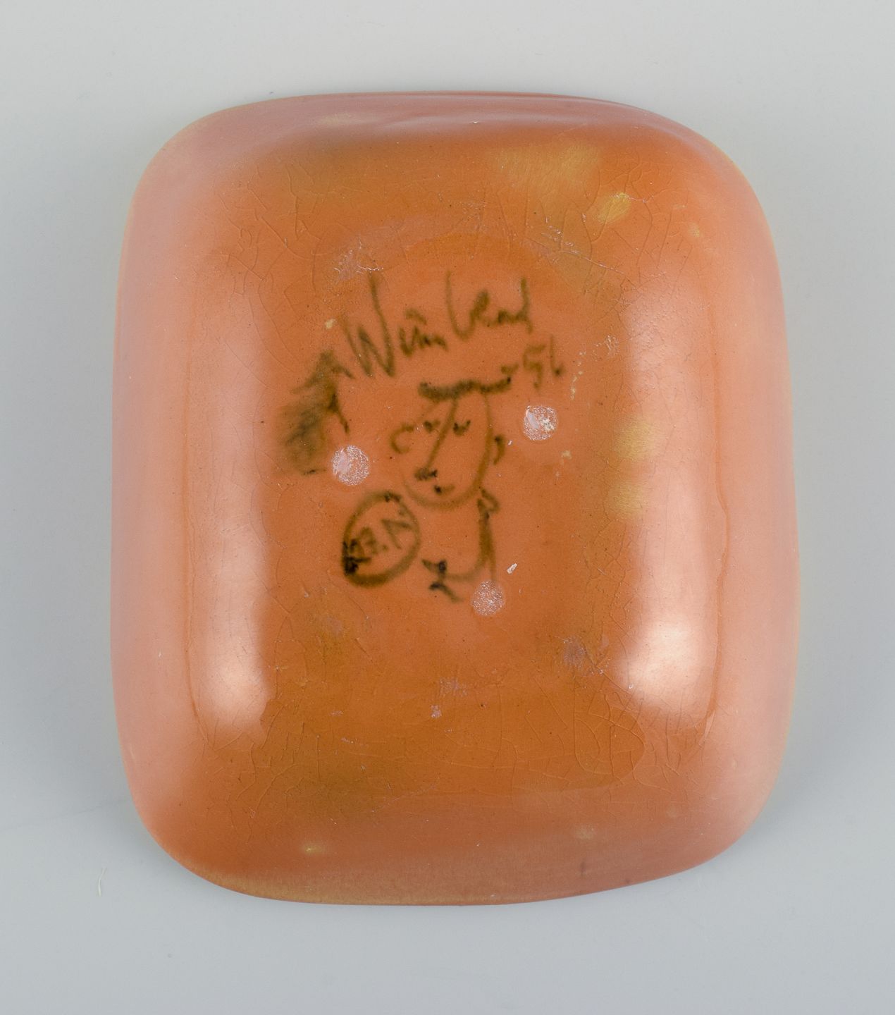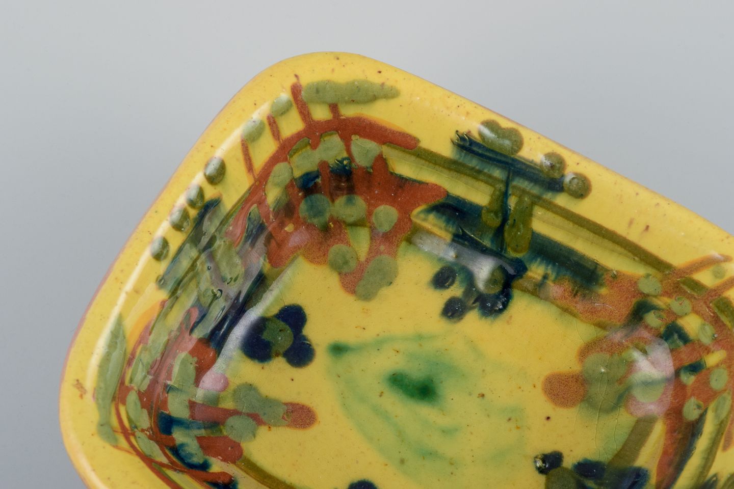 Bjørn Wiinblad (1918-2006), Danmark. Eget værksted. Unik og tidlig skål i håndmalet keramik. Abstrakt motiv i mange farver.