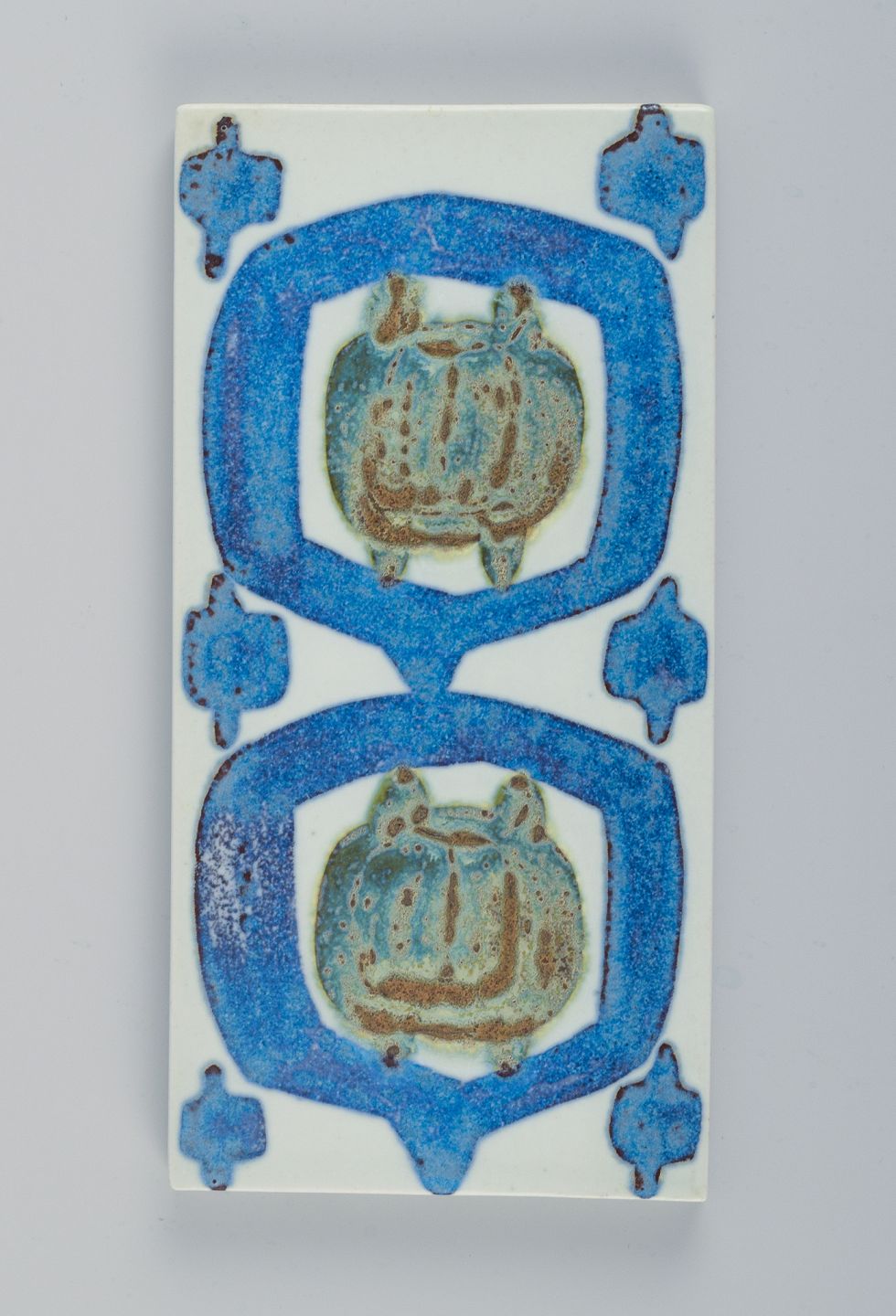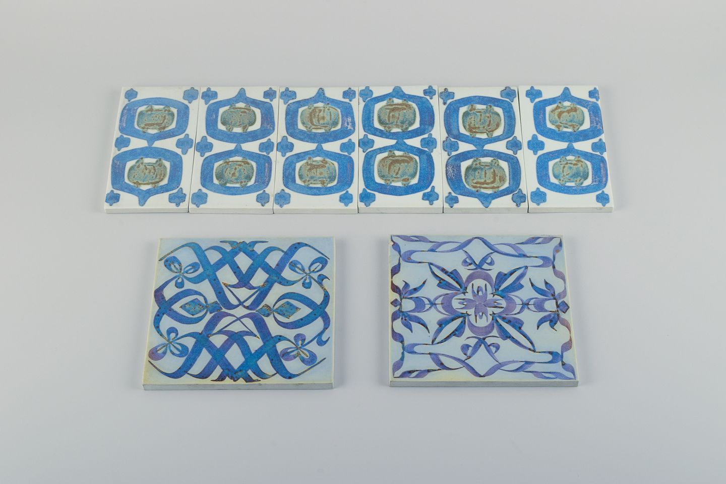 Aluminia og Royal Copenhagen, Tenera fajance. Otte kakler. Ca. 1960/70'erne Første sortering. Stemplet. Mål: De mindre: L 15,0 x D 7,7 cm. Kvadratisk: 15,4 cm.
