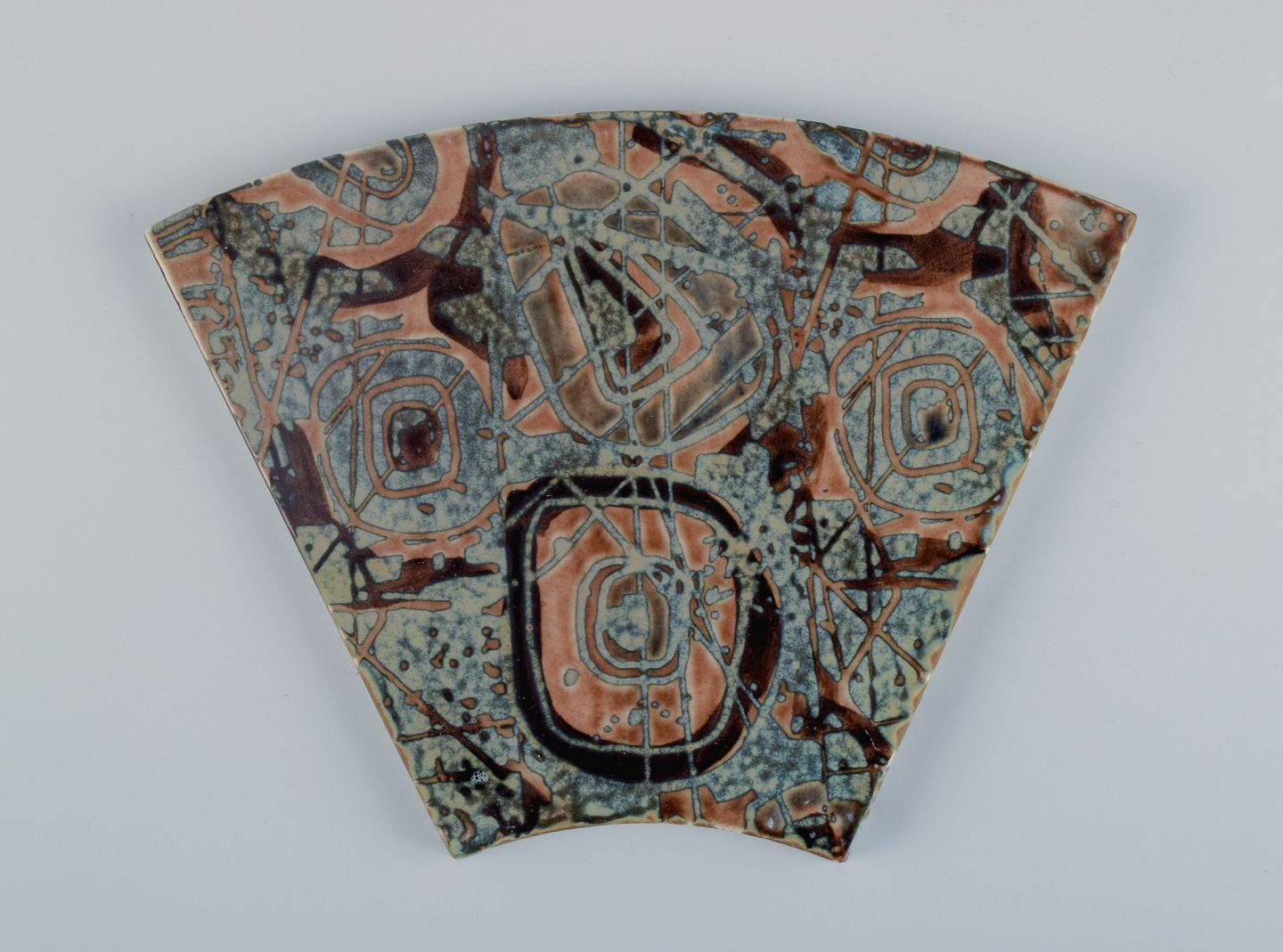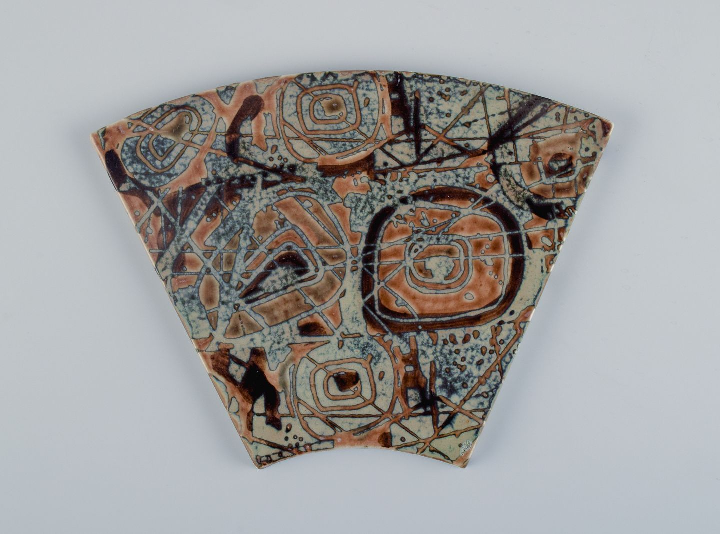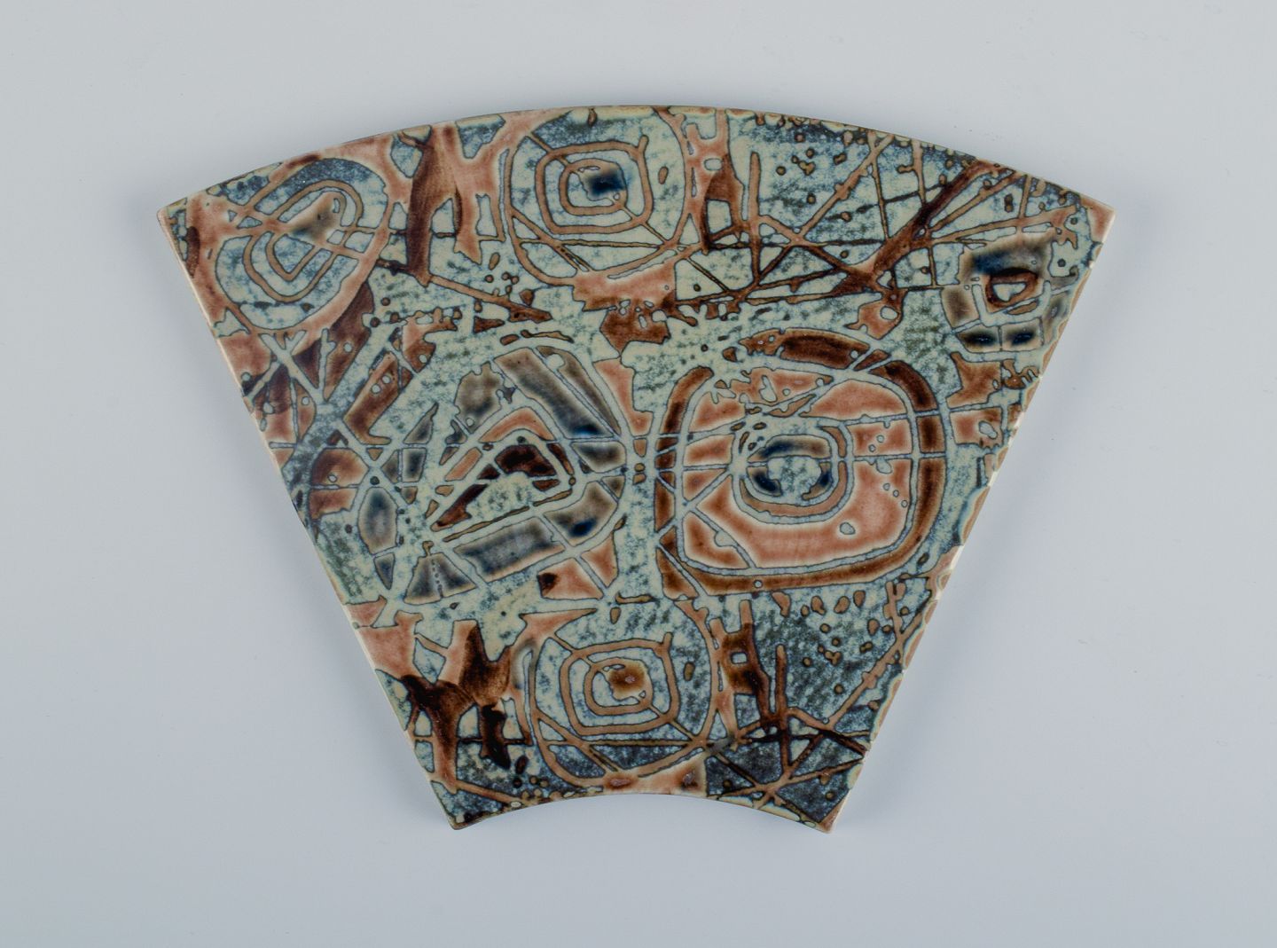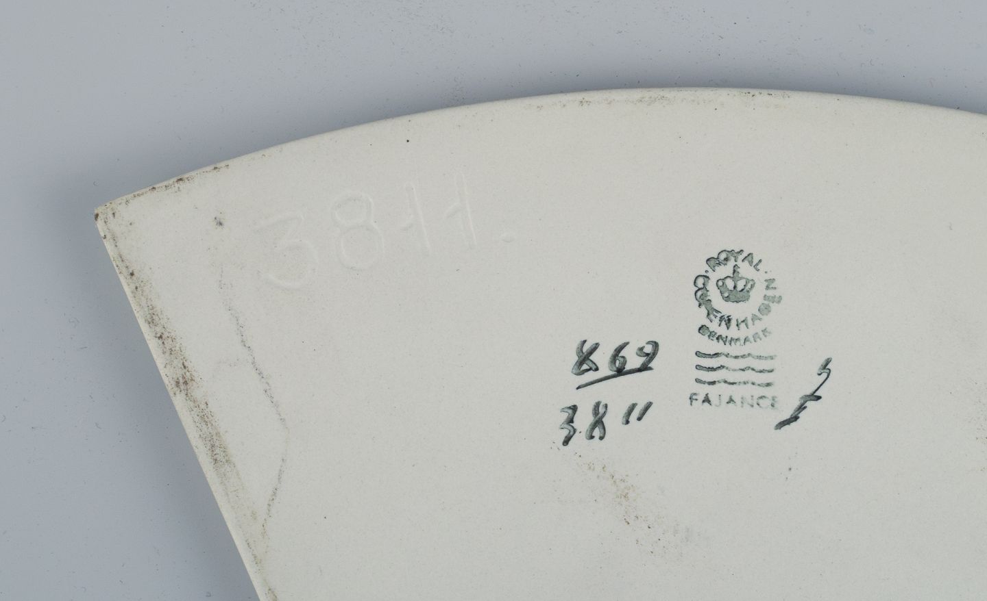 Royal Copenhagen, seks Baca fajancekakler med mønstret glasur i brun, blå, grøn og sandfarver. Model 869/3811 1970'erne. I perfekt stand. Stemplet. Første sortering. Mål: H 14,5 x B 19,5 cm.