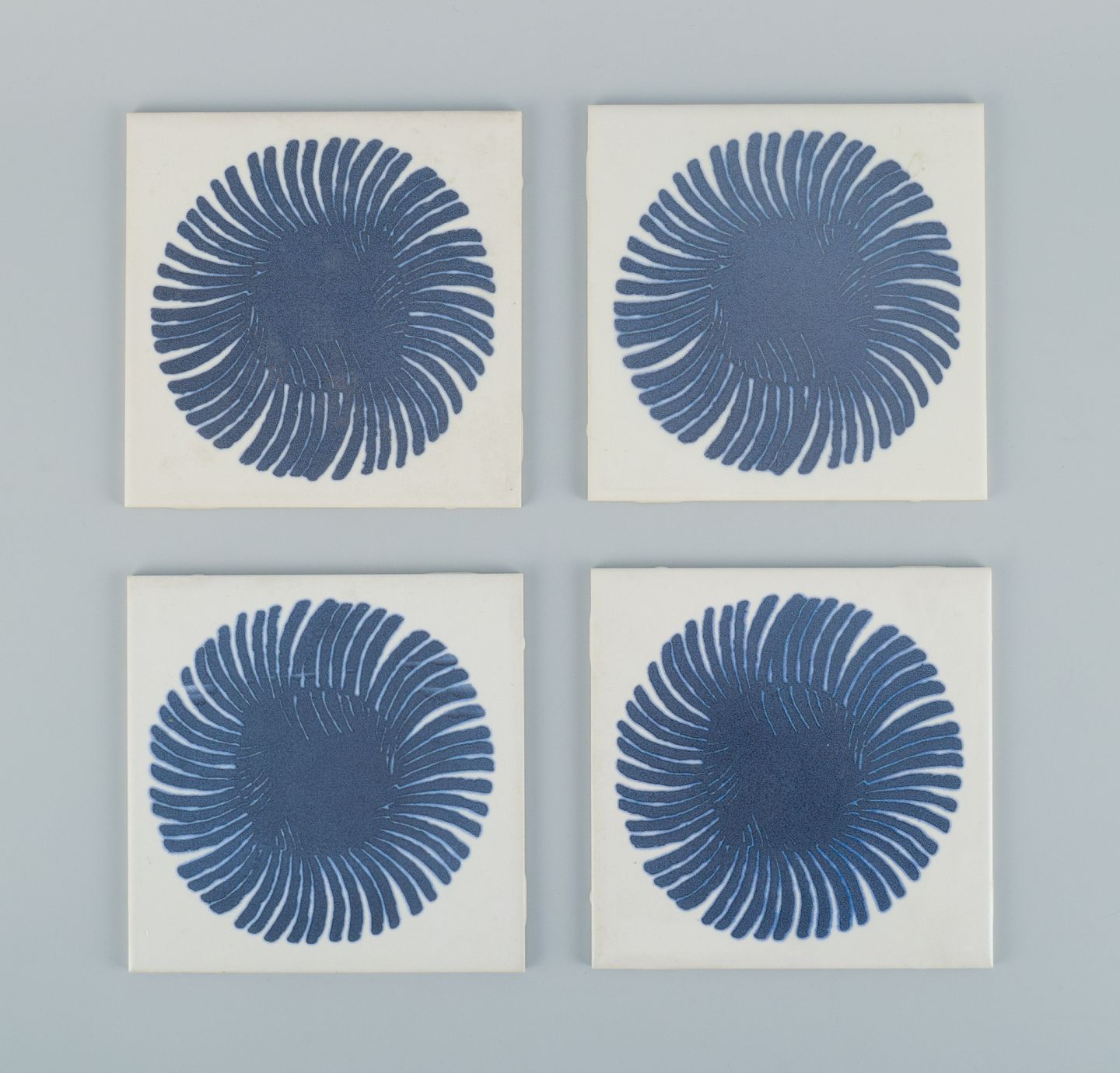 Royal Copenhagen, four tiles with an abstract motif. Mid 20th century. Perfect condition. Marked. Measurements: 15.3 cm.