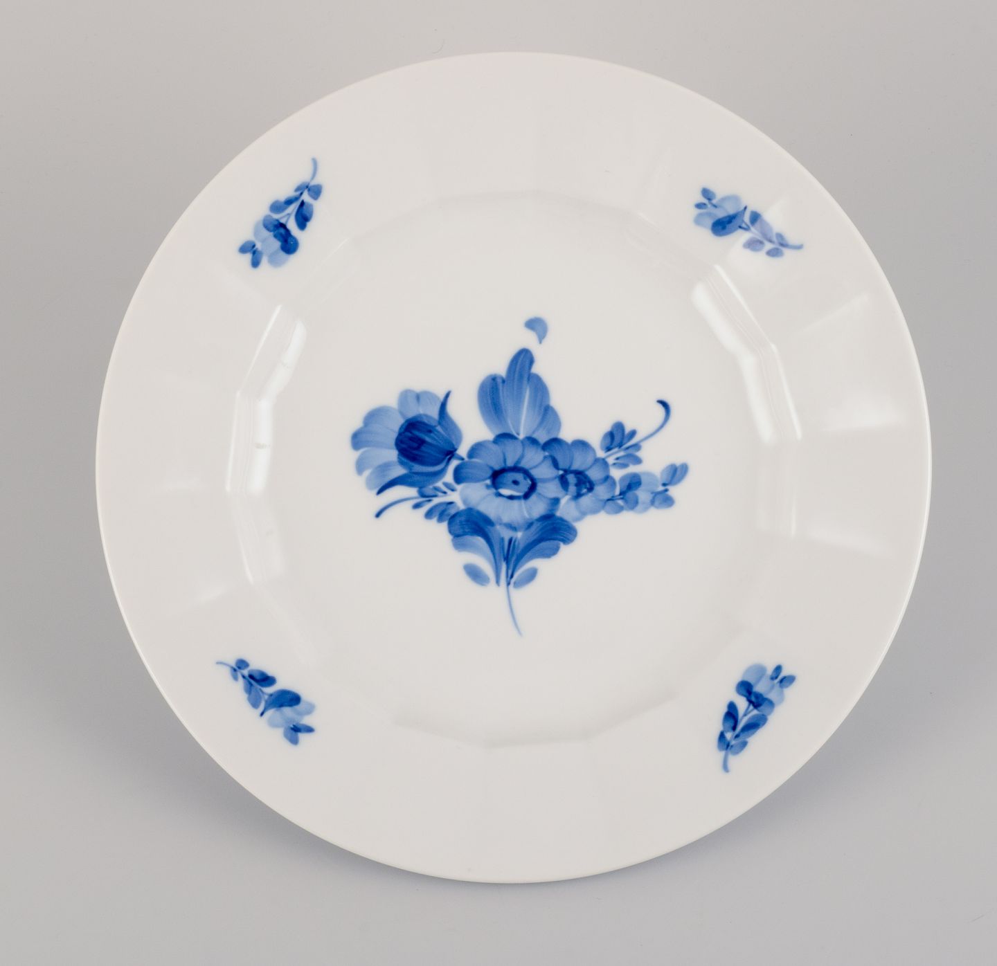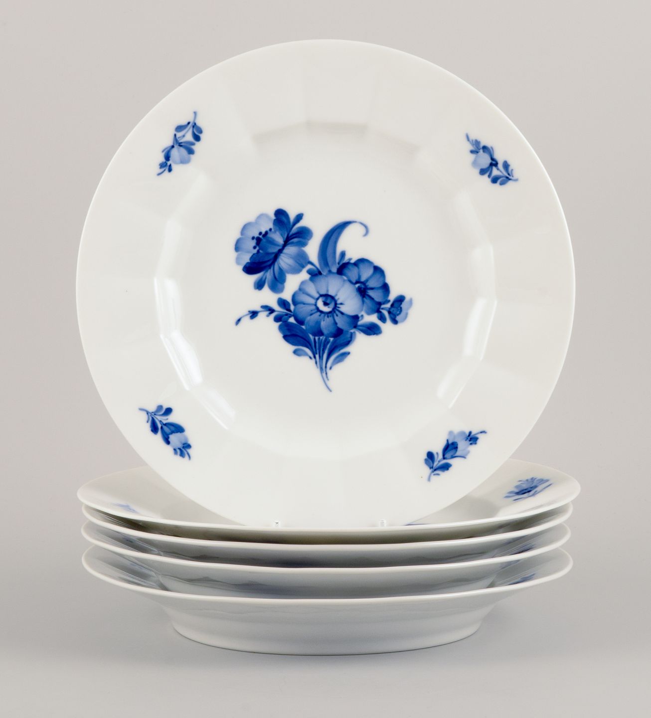 Royal Copenhagen, Blå Blomst Kantet, fem middagstallerkner. Modelnummer: 10/8549 1980/90'erne. Første sortering. I perfekt stand. Stemplet. Mål: D 26,0 cm. x H 3,5 cm.